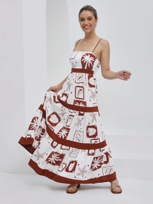 Ladies new holiday style printed suspender dress