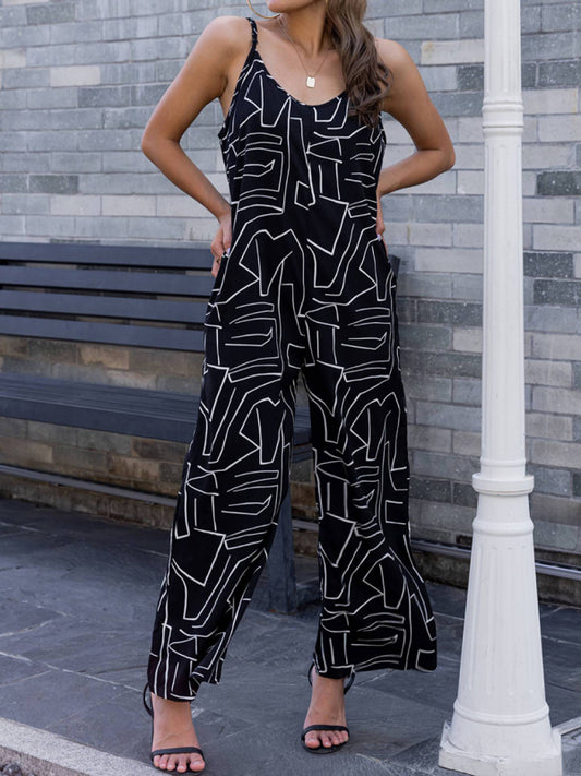 Regular price $45.00 USDRegular priceUnit price / per$50.00 USDSale price $45.00 USDWomen's street style women's printed cotton trousers jumpsuit high waist casual pants