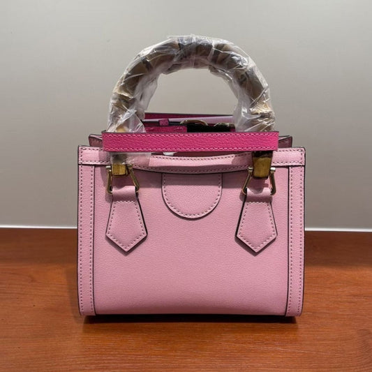 Bamboo Handle First Layer Cowhide Bacchus Bag All-Match Single-Shoulder Messenger Bag, Size:27cm(Cherry Blossom Pink)