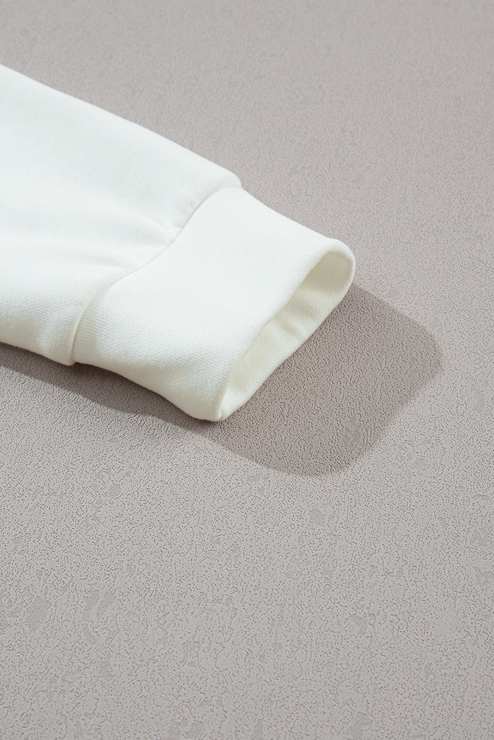 Beigefarbener Hoodie mit überschnittener Schulterpartie, gestepptem Patchwork und Kängurutasche