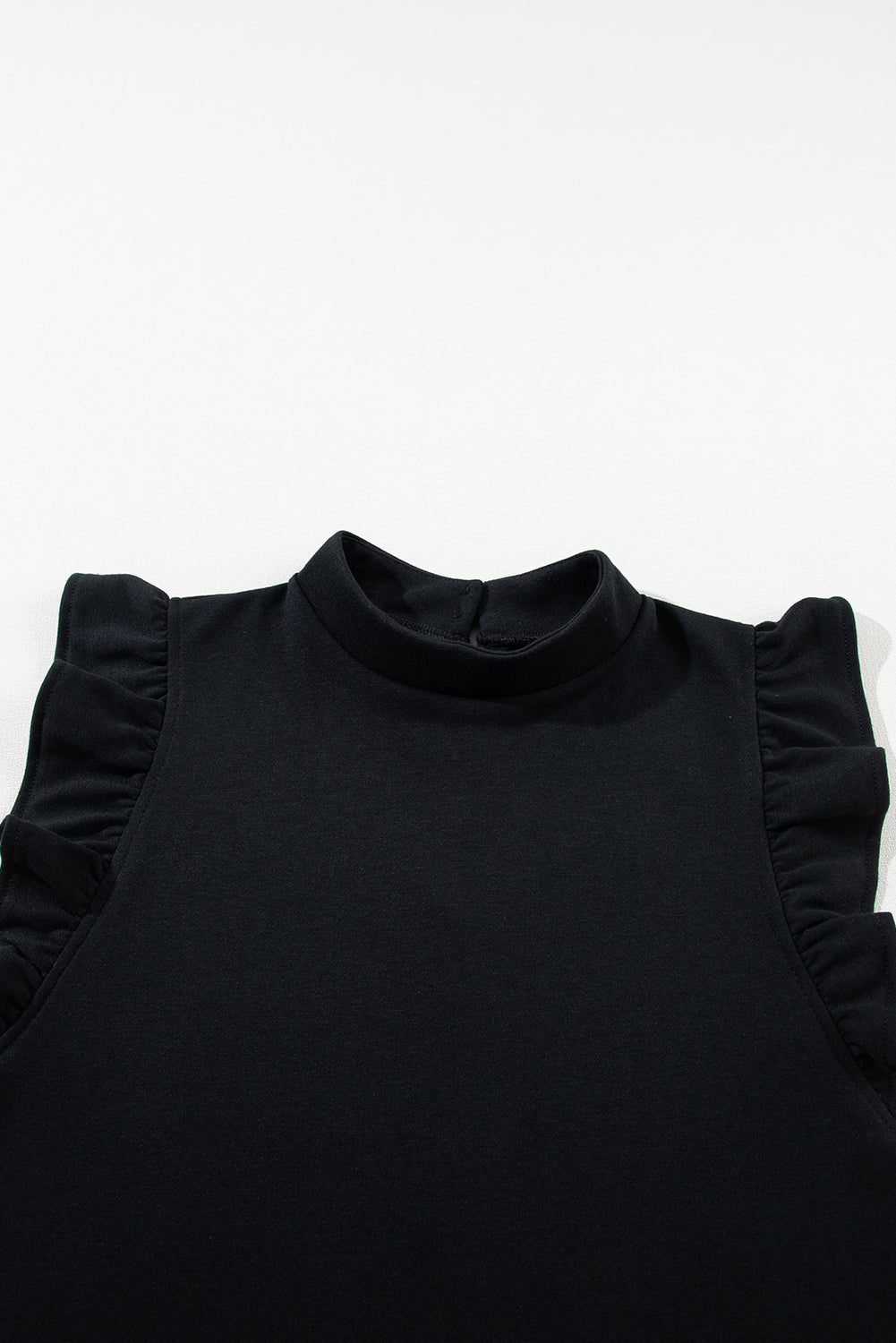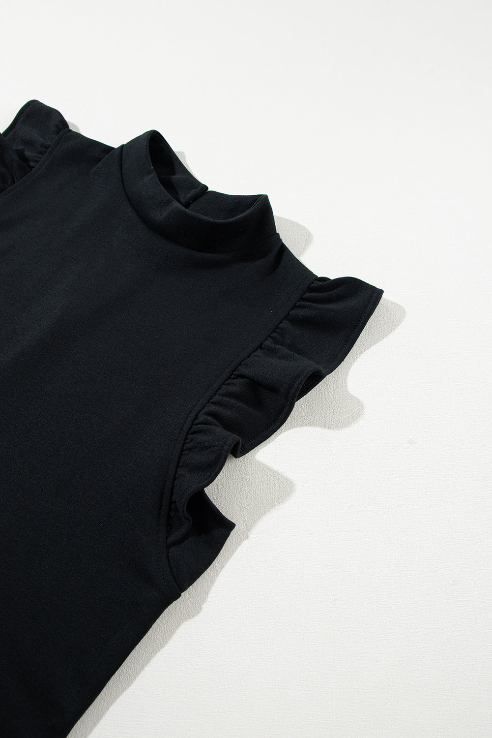 Rundhalsausschnitt, Flügelärmel und gerüschter Saum