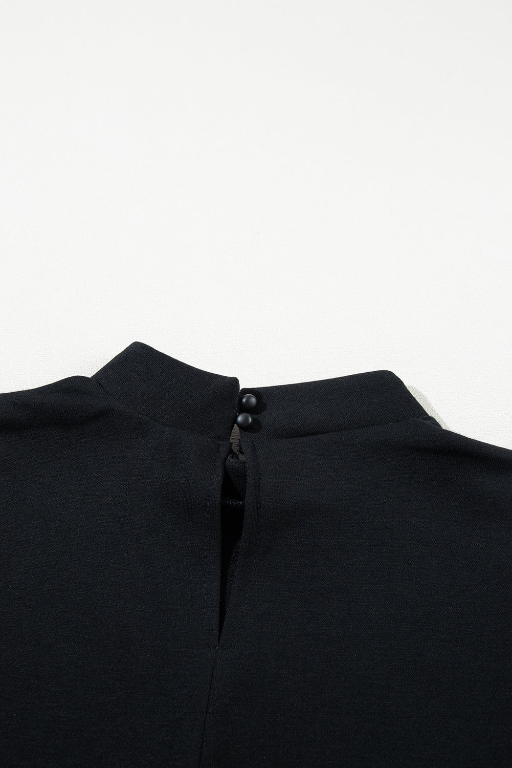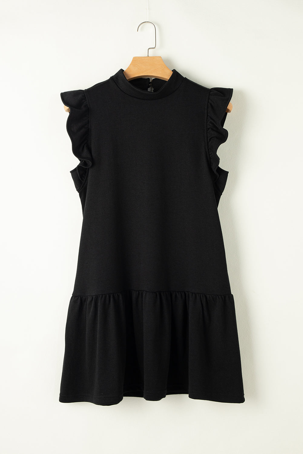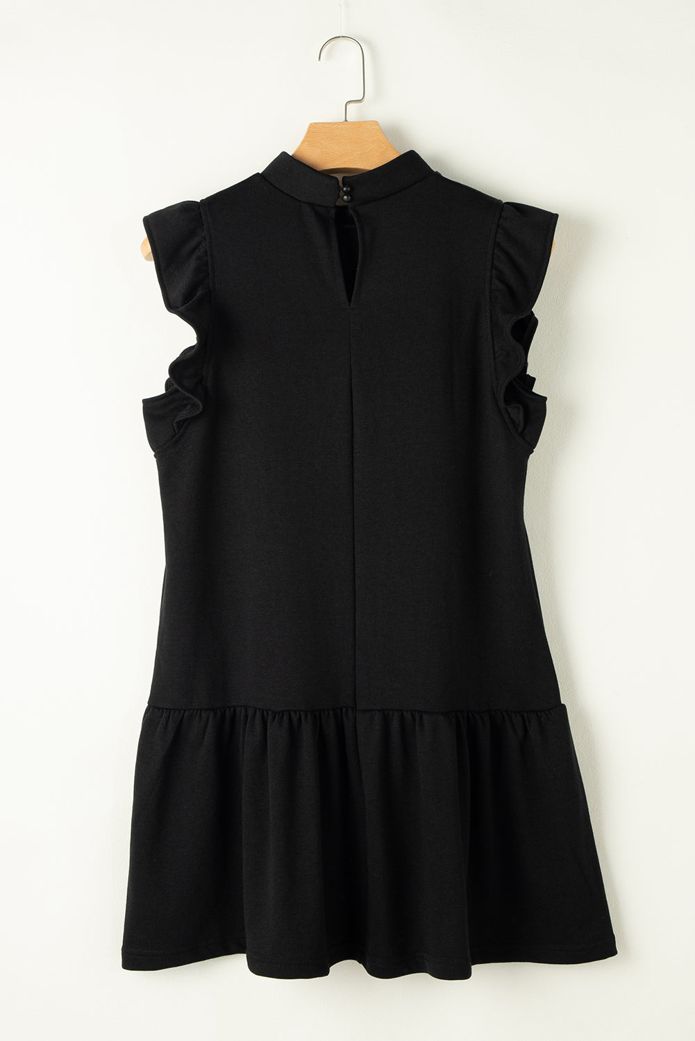 Schwarzes Etuikleid mit Flatterärmeln und Rundhalsausschnitt