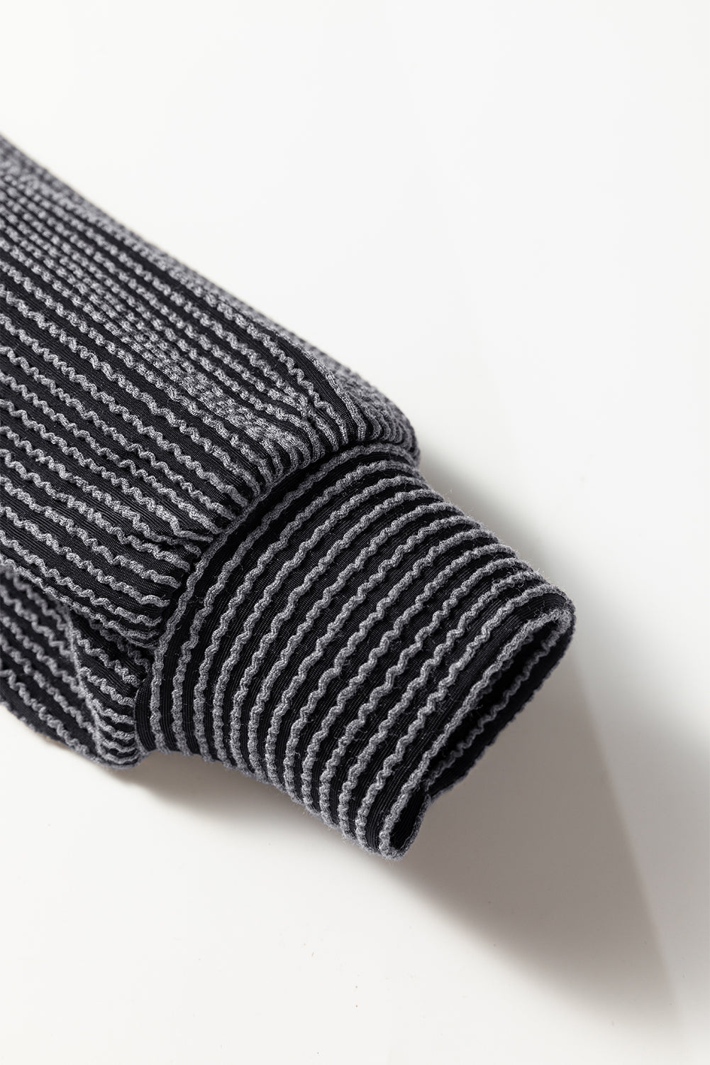 Twisted ribbed details at the neckline and sleeves.