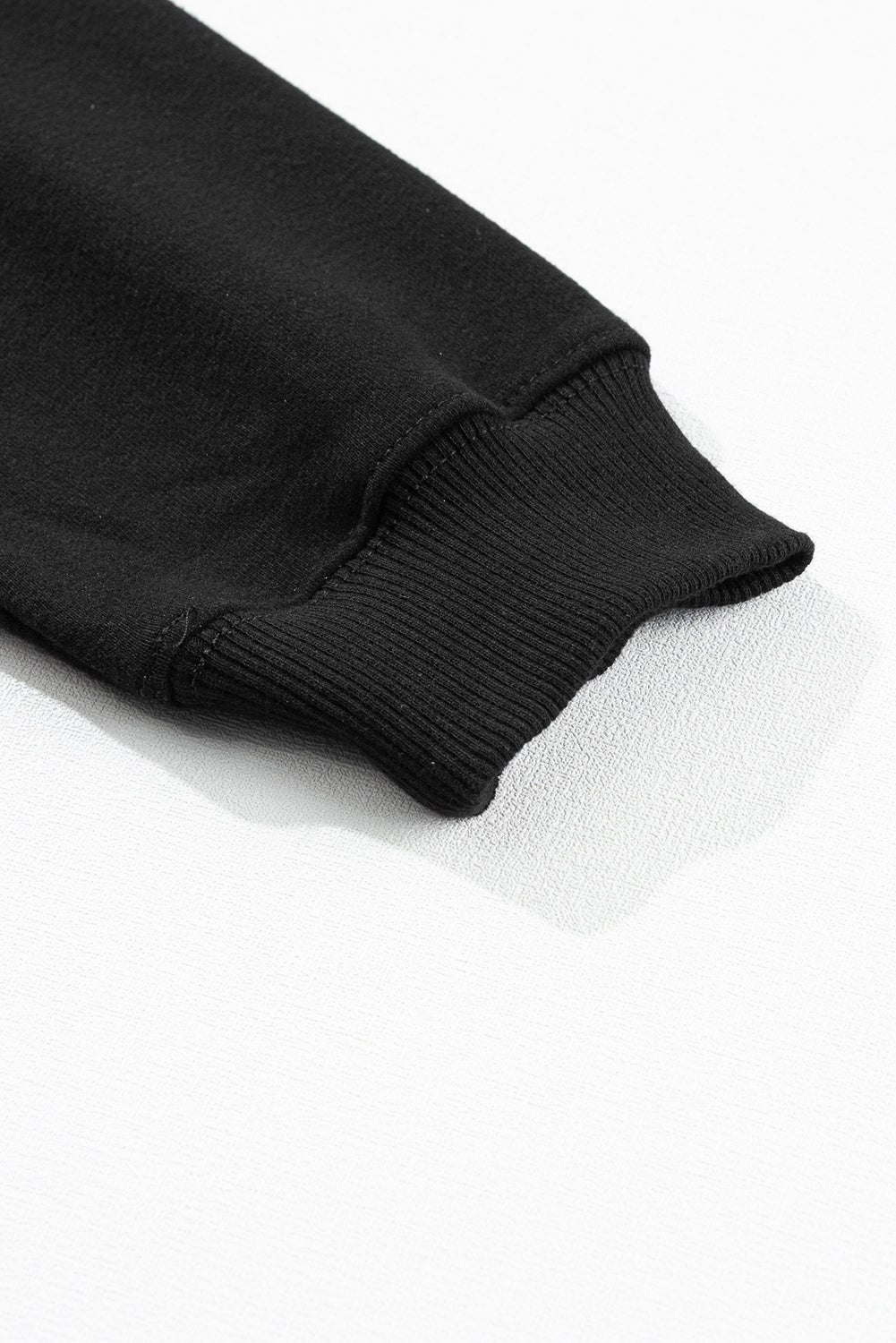 Schwarzes Sweatshirt mit „Merry Every Thing“-Lametta-Slogan