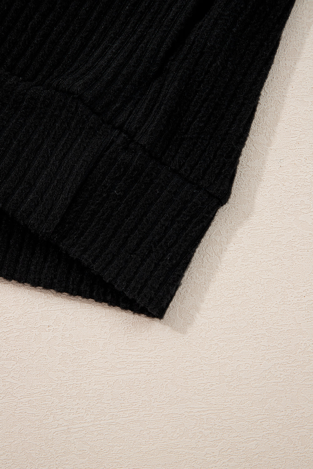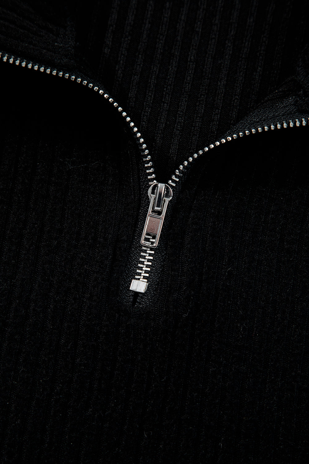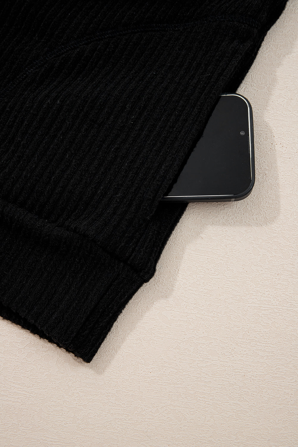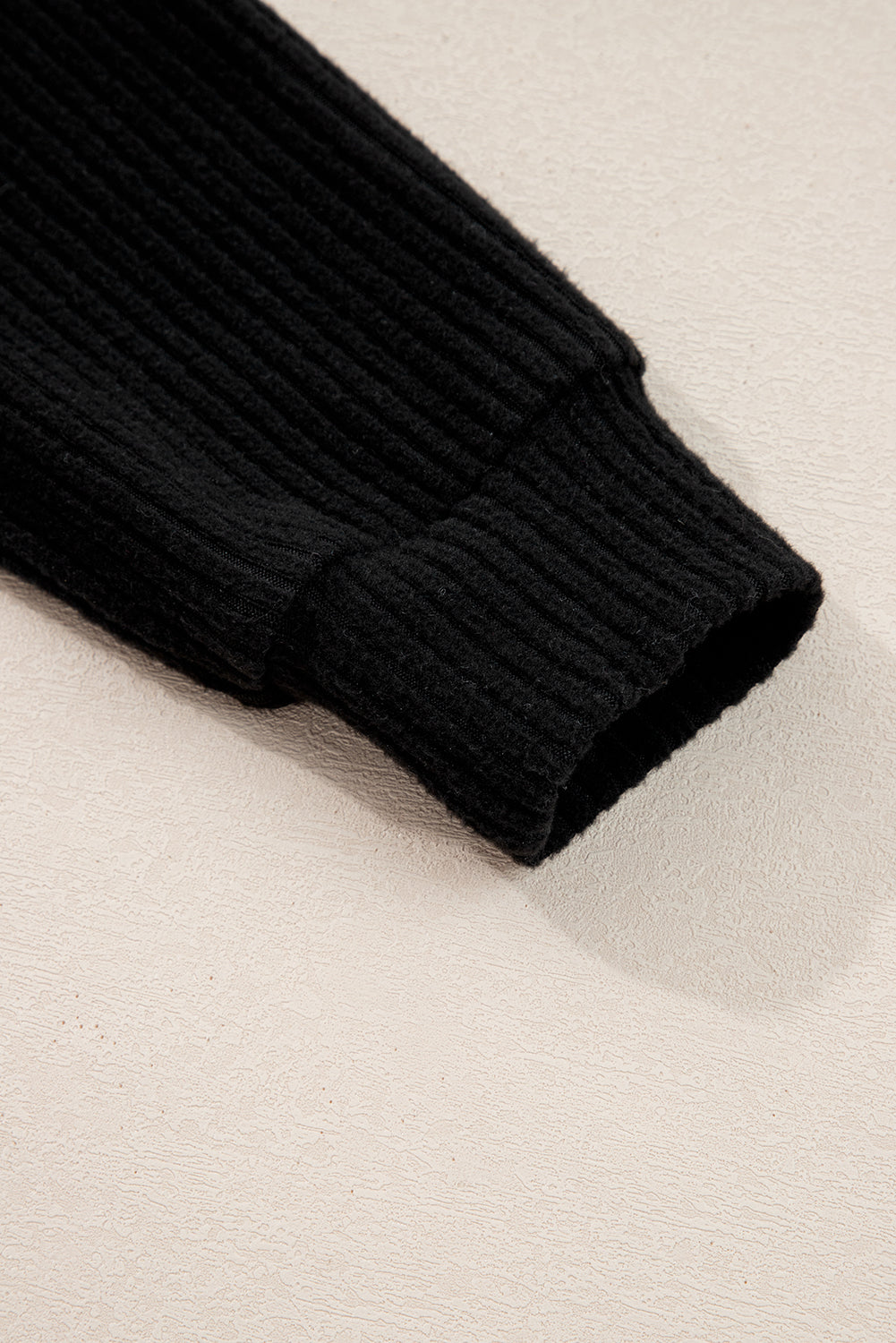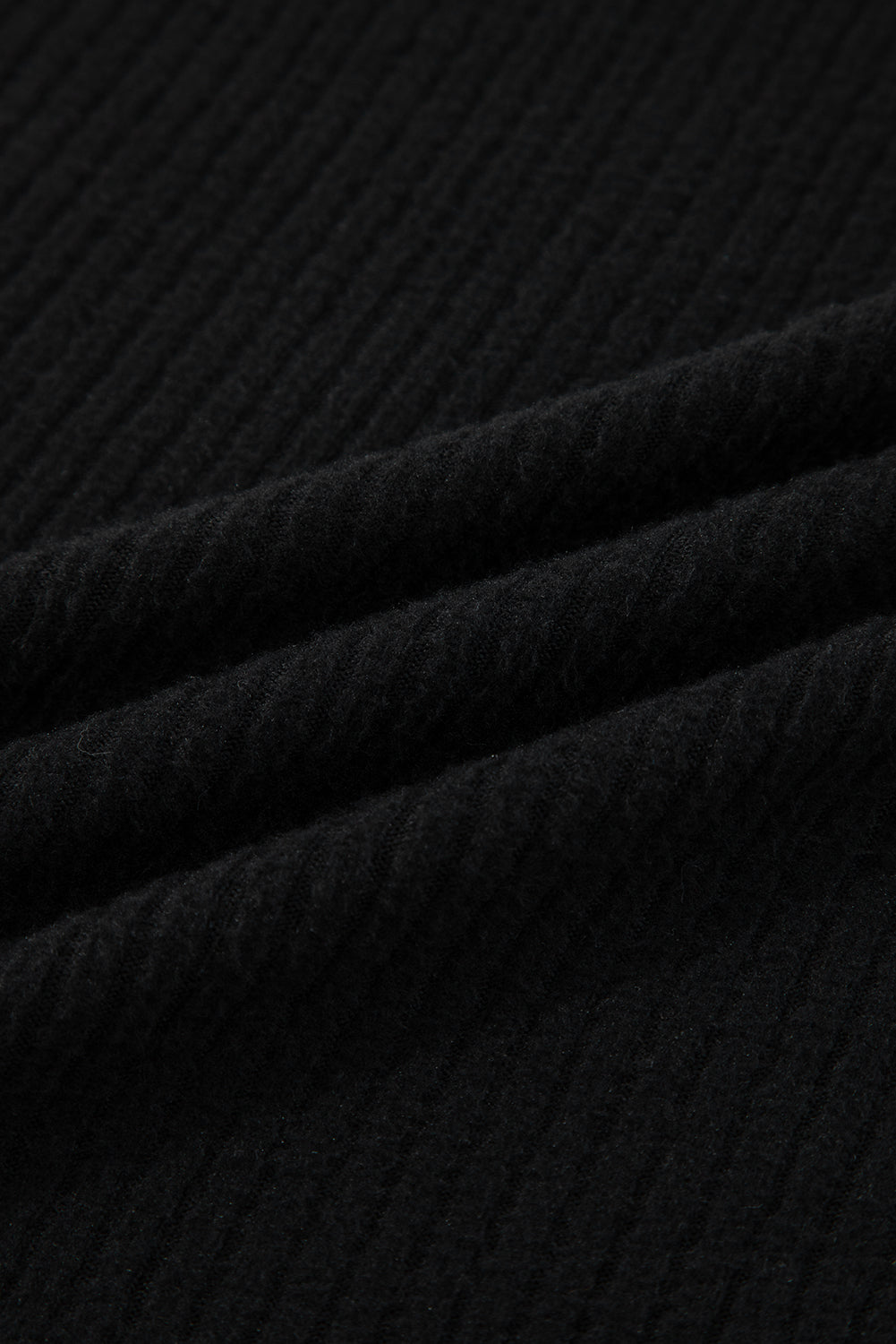 Black Ribbed Zip Stand Neck Drop Shoulder Pullover Bodycon Skirt 2pcs Set