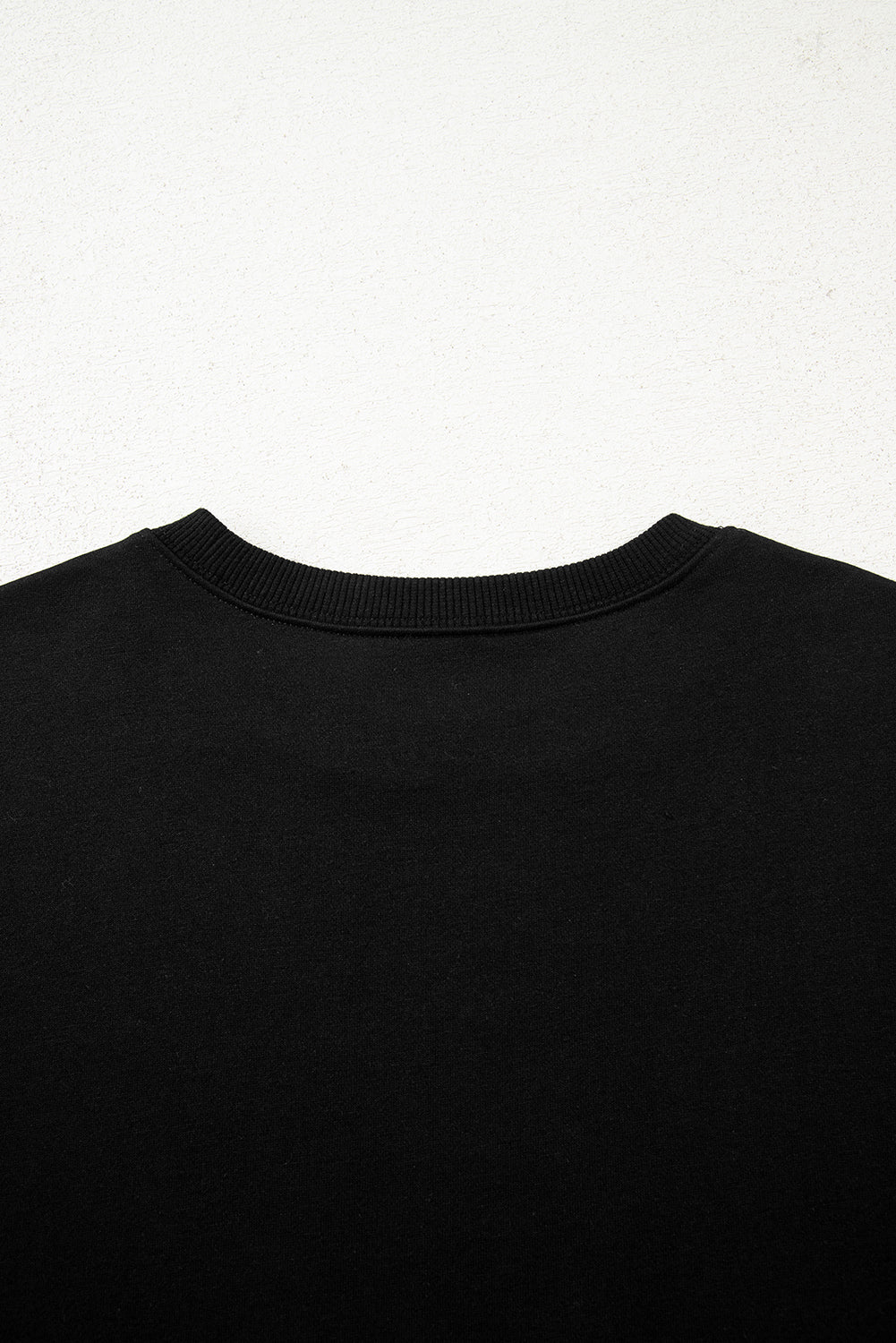 Black Varsity Striped Sleeve Drop Shoulder Sweatshirt and Short Set