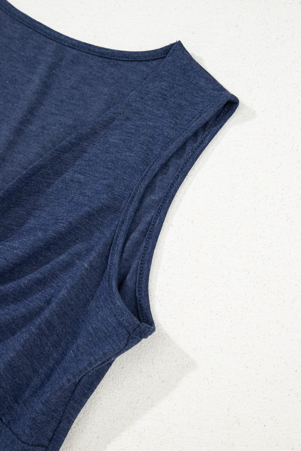Schmutzigblaues ärmelloses Kleid mit V-Ausschnitt und verdrehter Brust