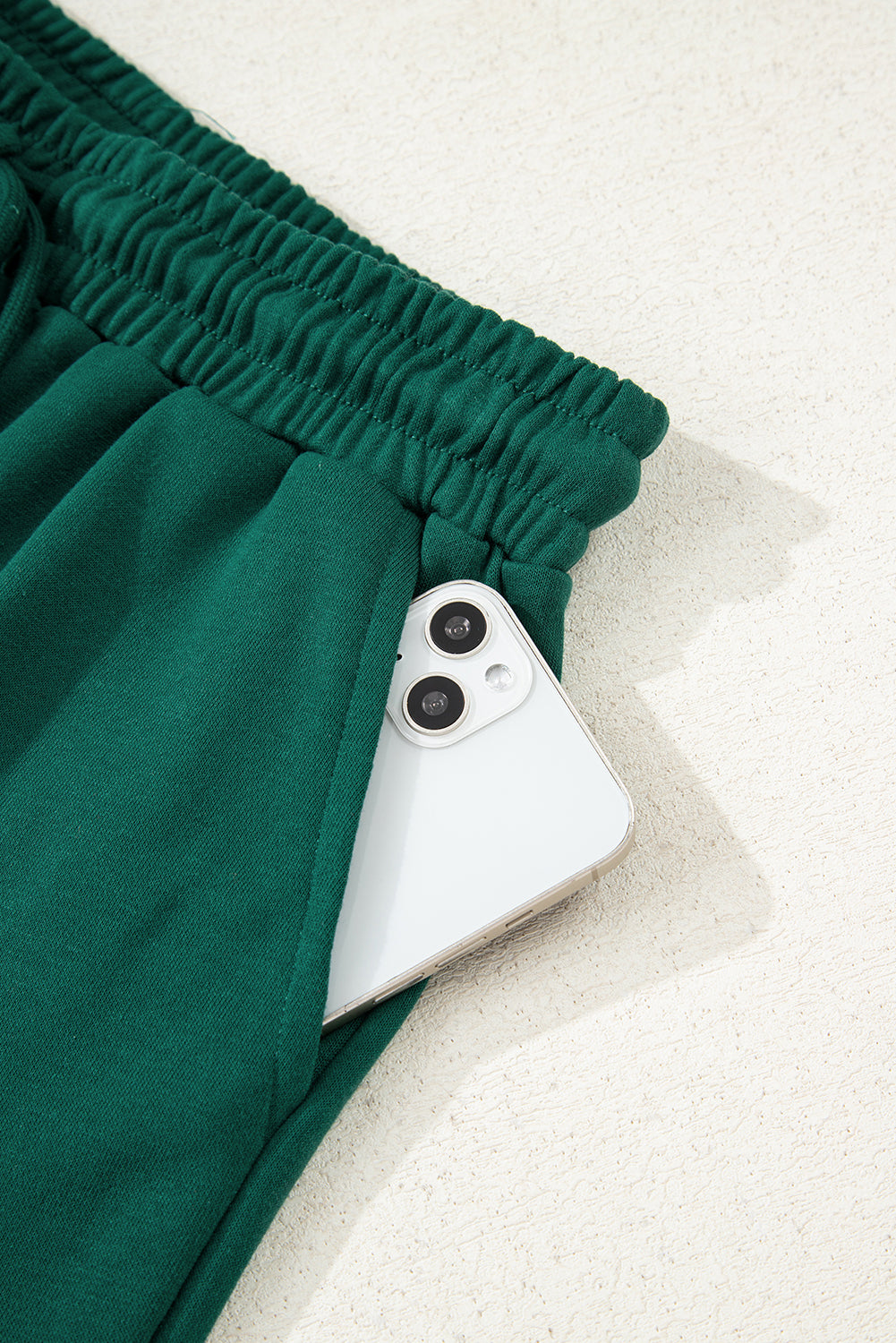 Evergreen Varsity Striped Sleeve Drop Shoulder Sweatshirt and Short Set