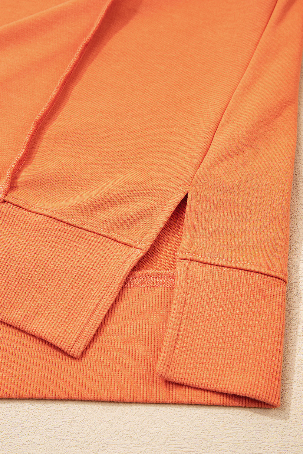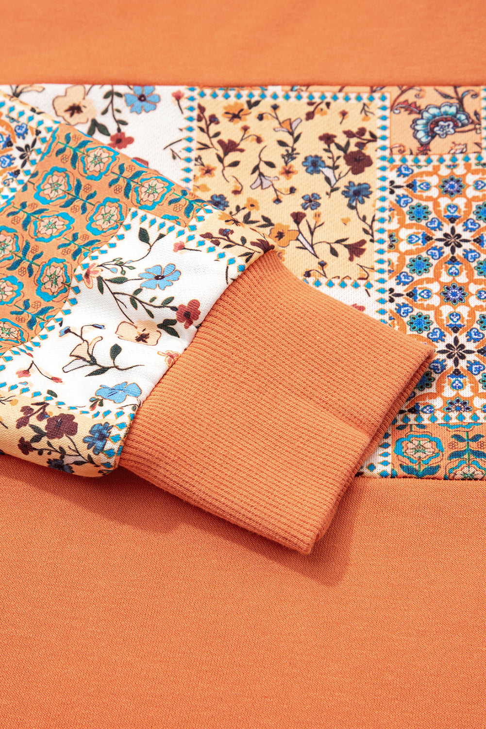 Flamingo Mix Floral Patchwork Side Slit Drawstring Hoodie