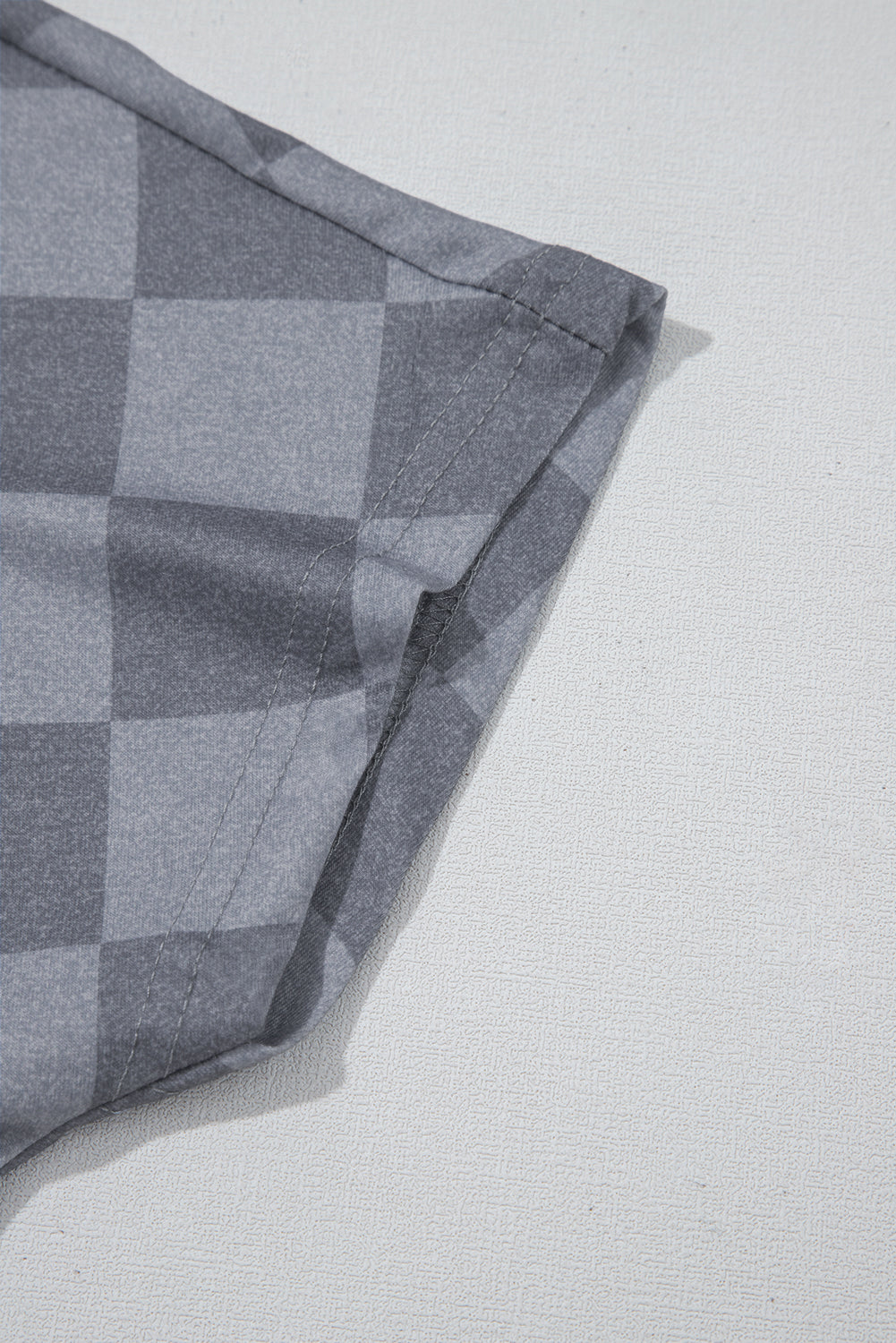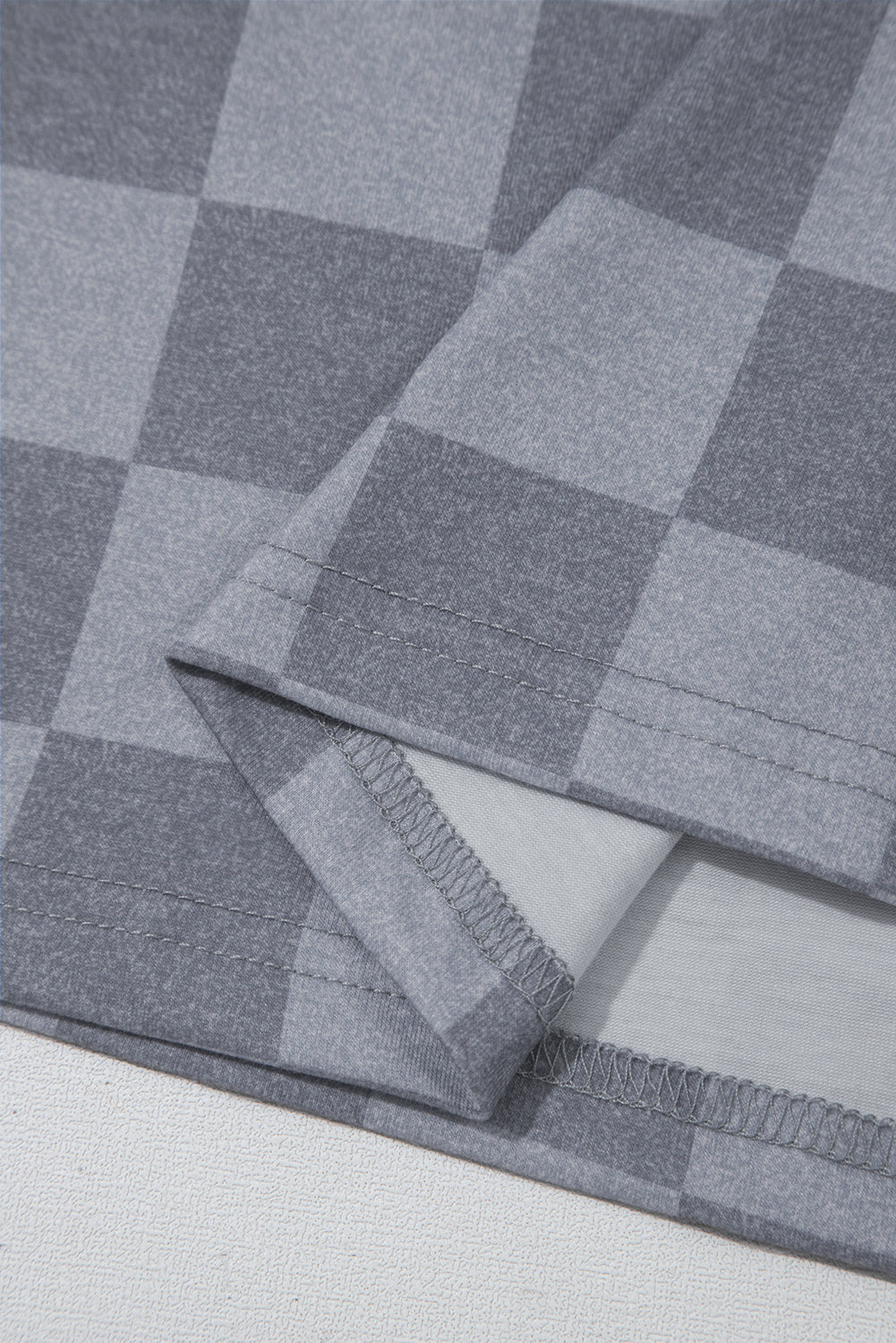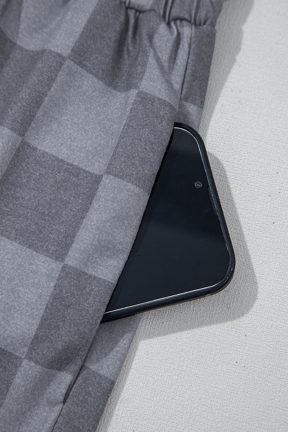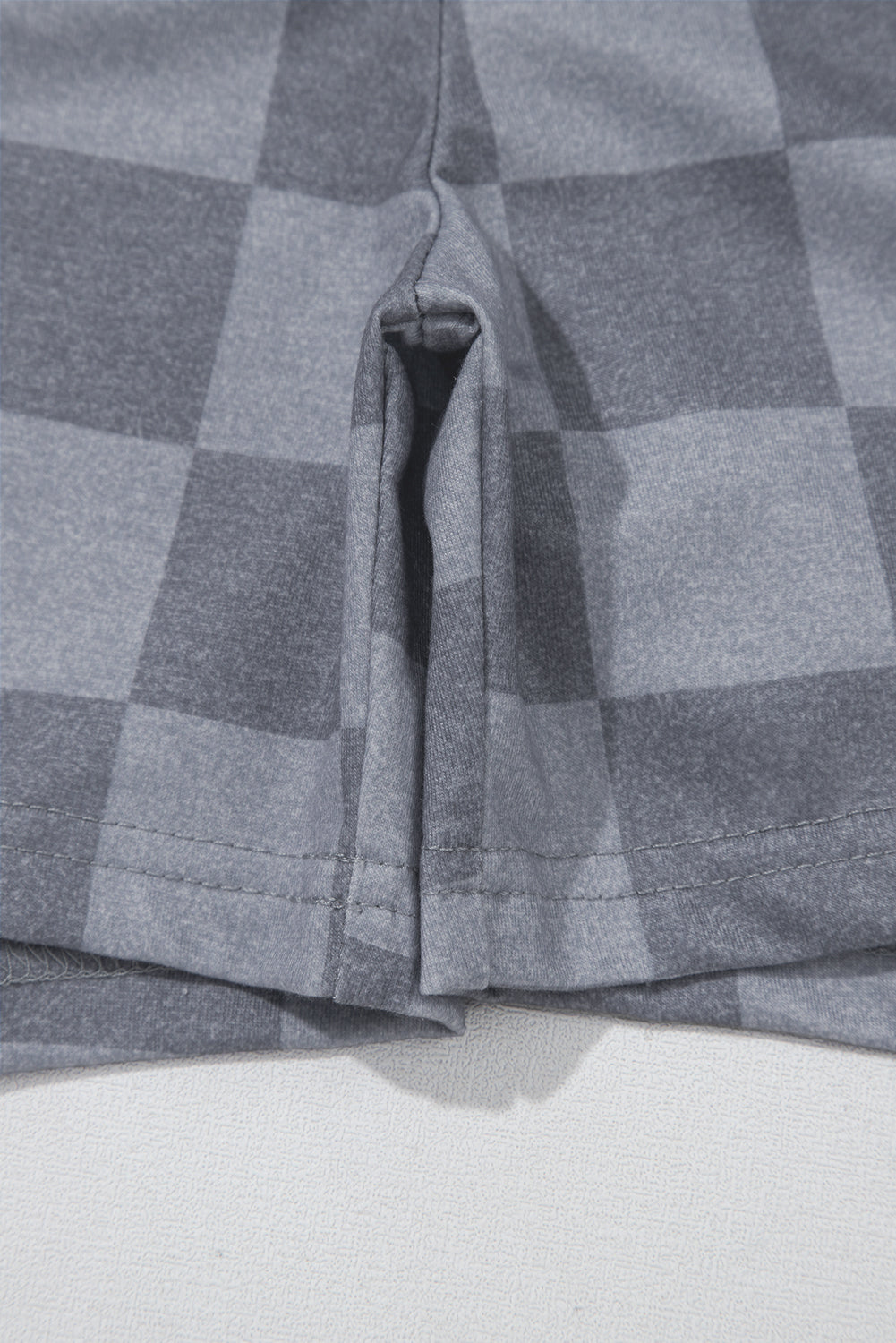 Grau kariertes T-Shirt mit V-Ausschnitt und Shorts mit Kordelzug