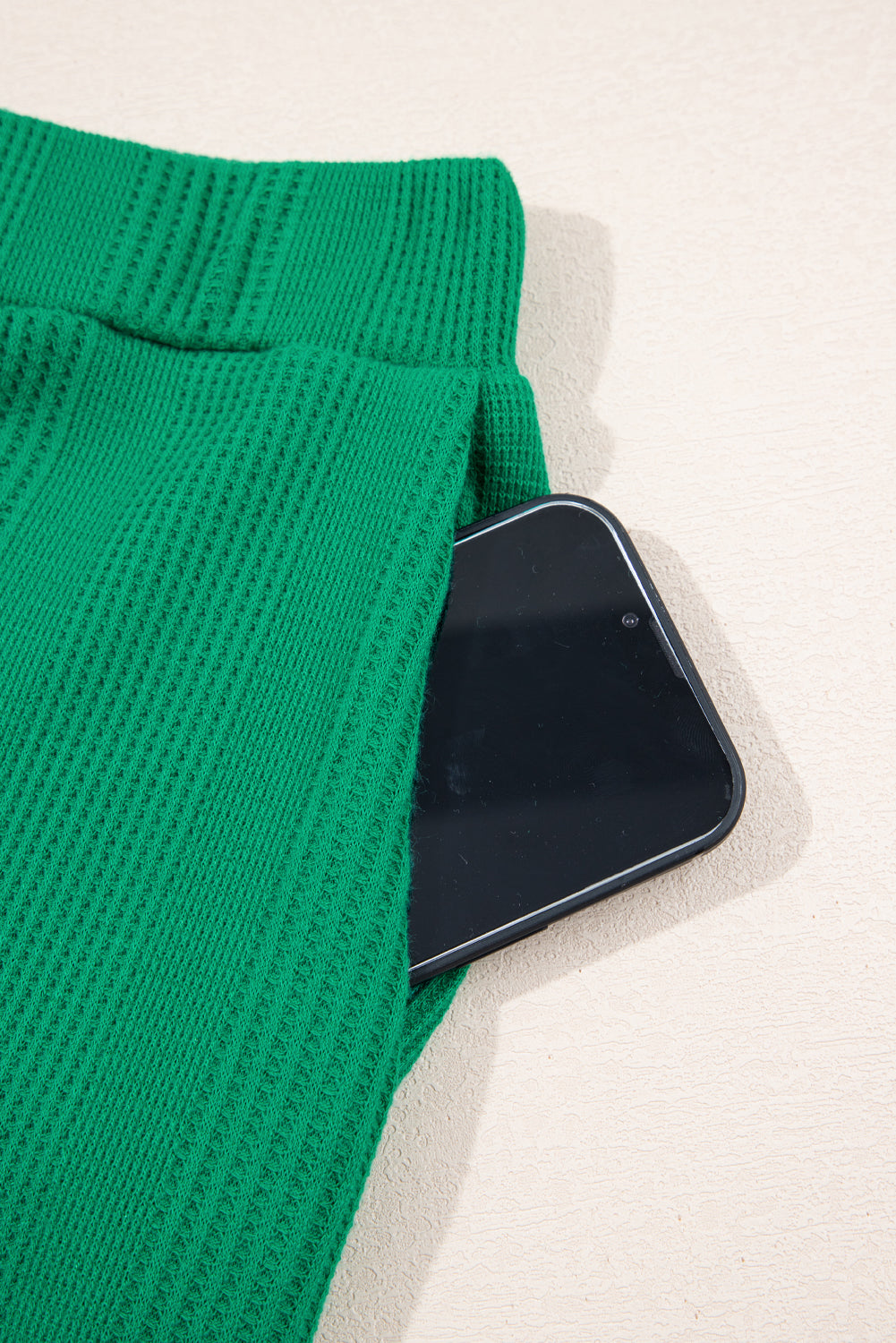 Grünes, einfarbiges Set aus geripptem Tanktop und Hose mit Rüschen