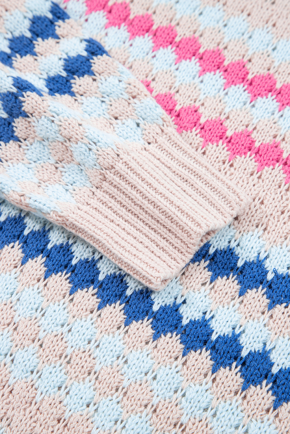 Khaki Stripe Eyelet Patterned Drop Shoulder Sweater
