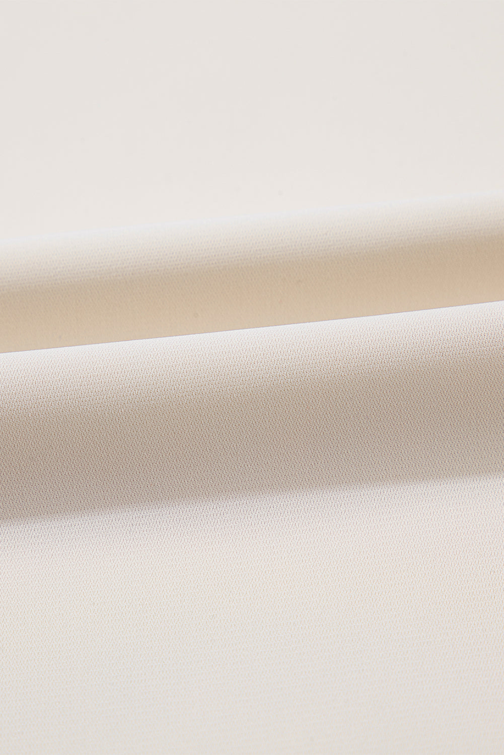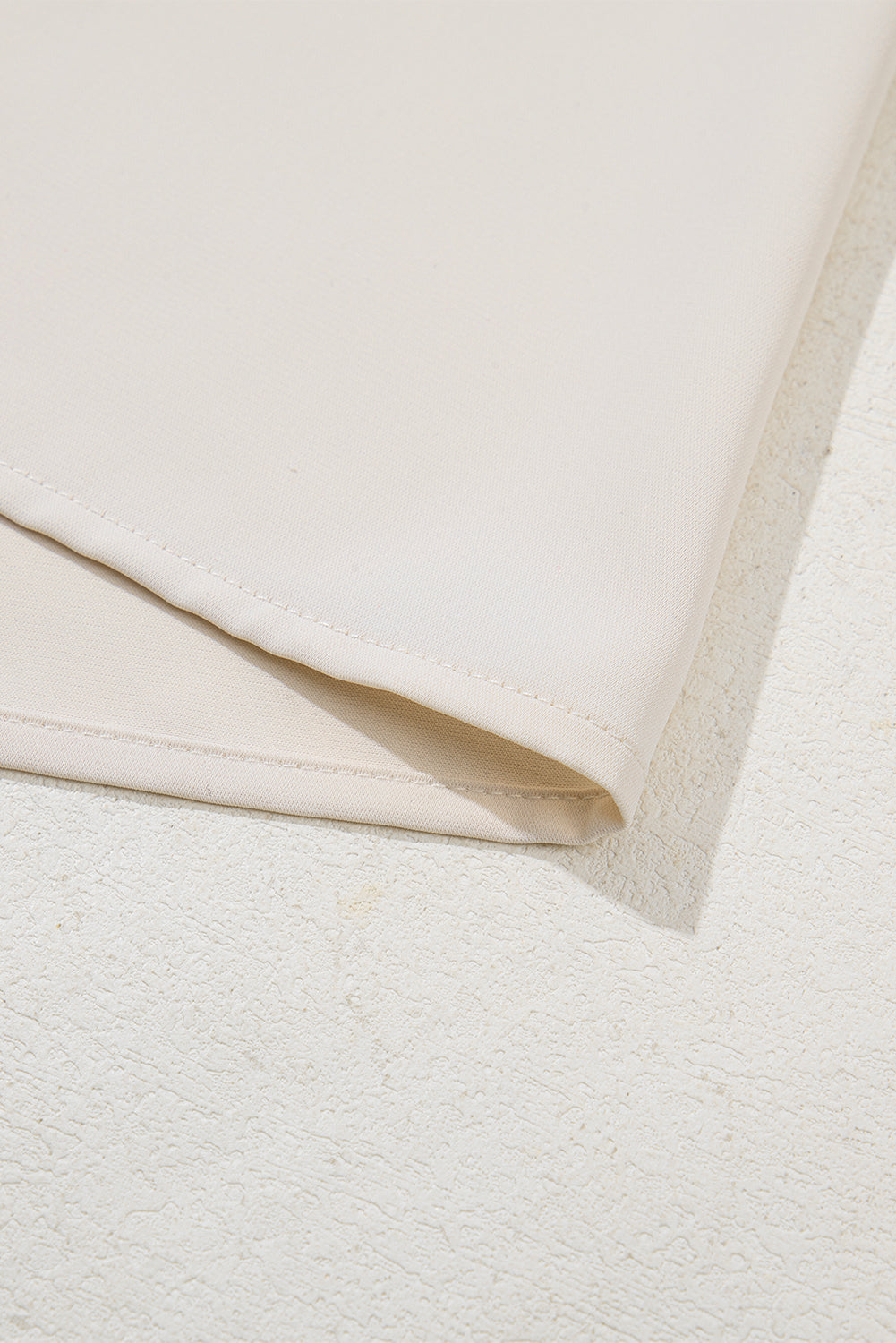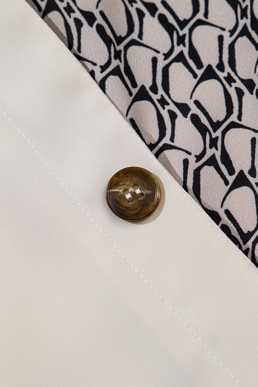 Haferflockenfarbenes Patchwork-Oberteil mit V-Ausschnitt und geometrischem Kontrastdruck in Übergröße