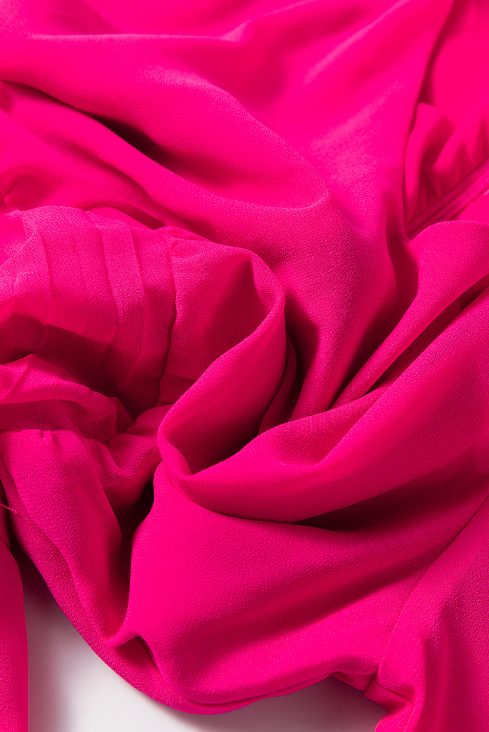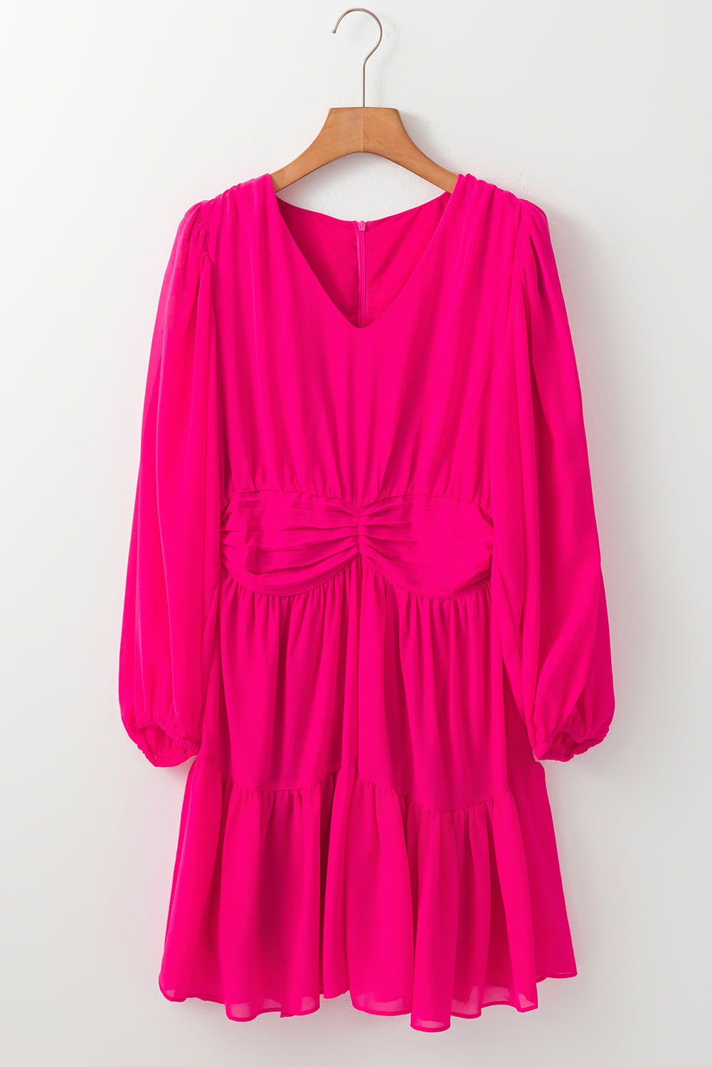 Rosarotes Puff-Minikleid mit langen Ärmeln und V-Ausschnitt