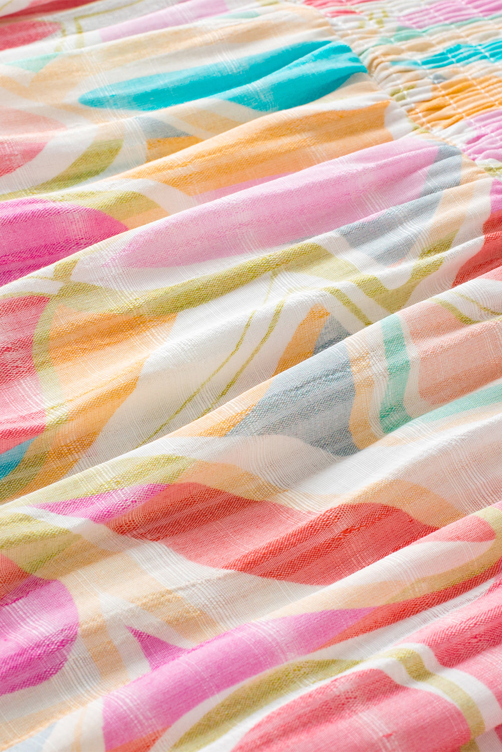 Verleihen Sie Ihrem Alltag mit dieser abstrakten Bluse einen Hauch von farbenfrohem Spaß