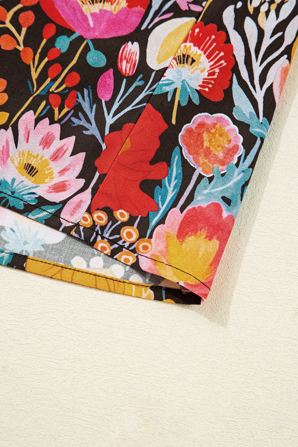 Black Floral 3/4 Puff Sleeve Tied Neck Blouse