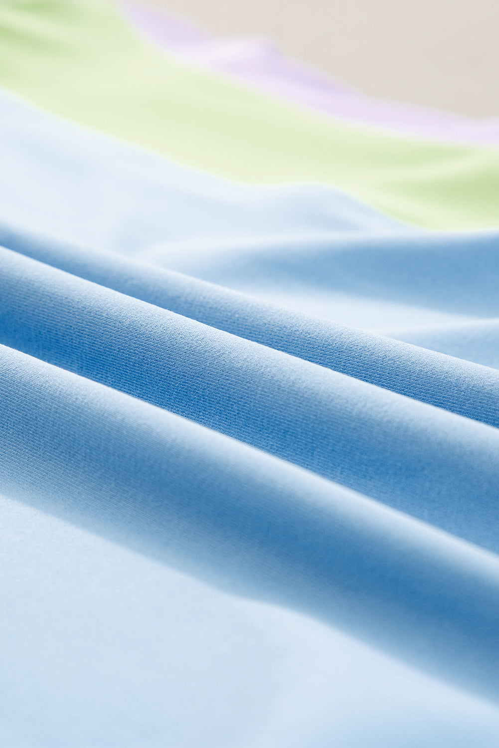 Blue Contrast Trim Cap Sleeve Tee Shorts Set