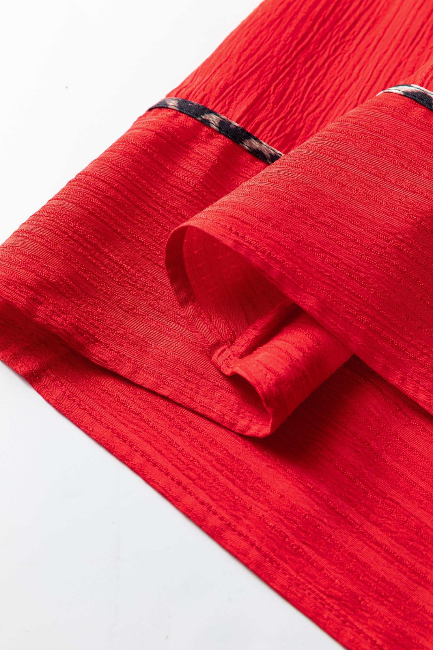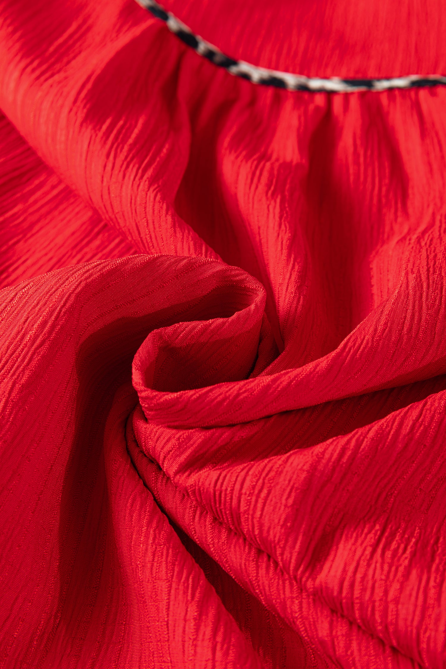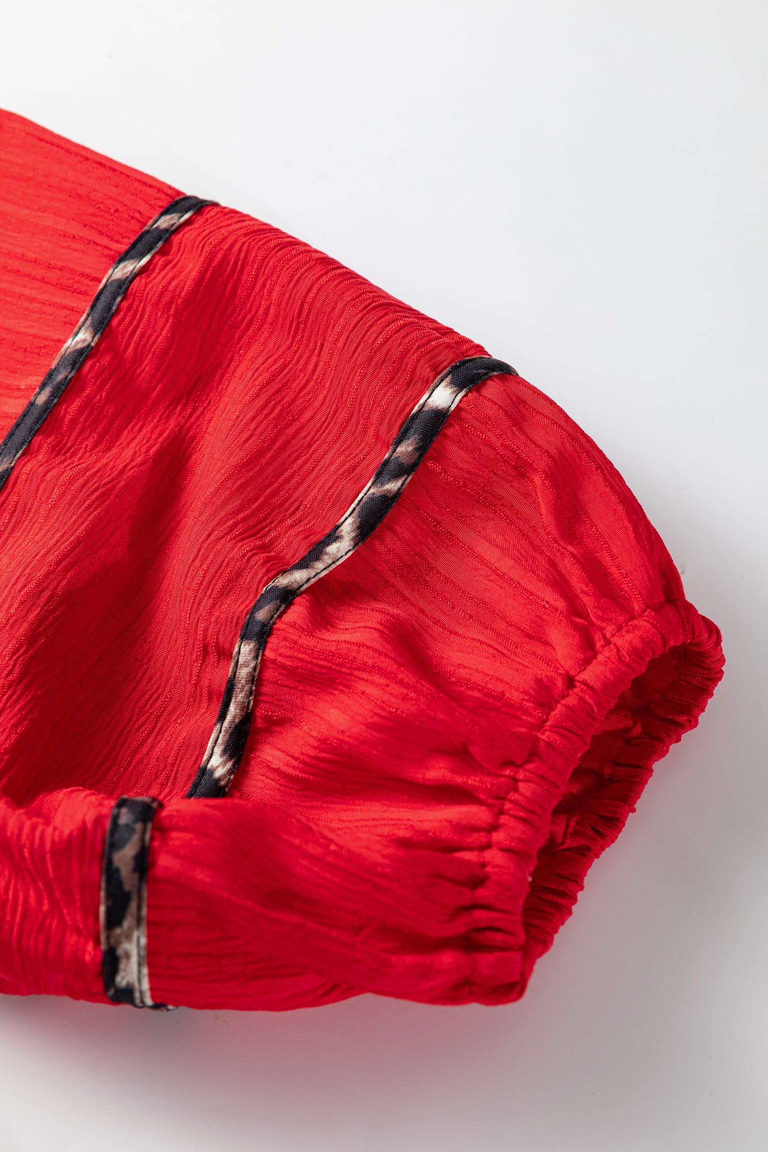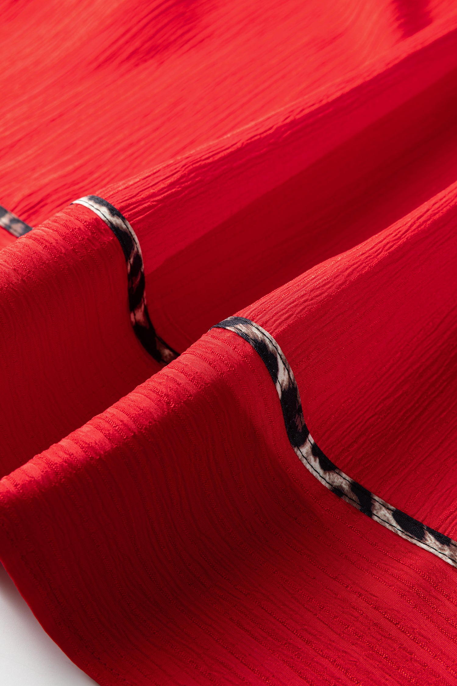 Fiery Red Textured V Neck Leopard Contrasted Trim Long Sleeve Shift Mini Dress