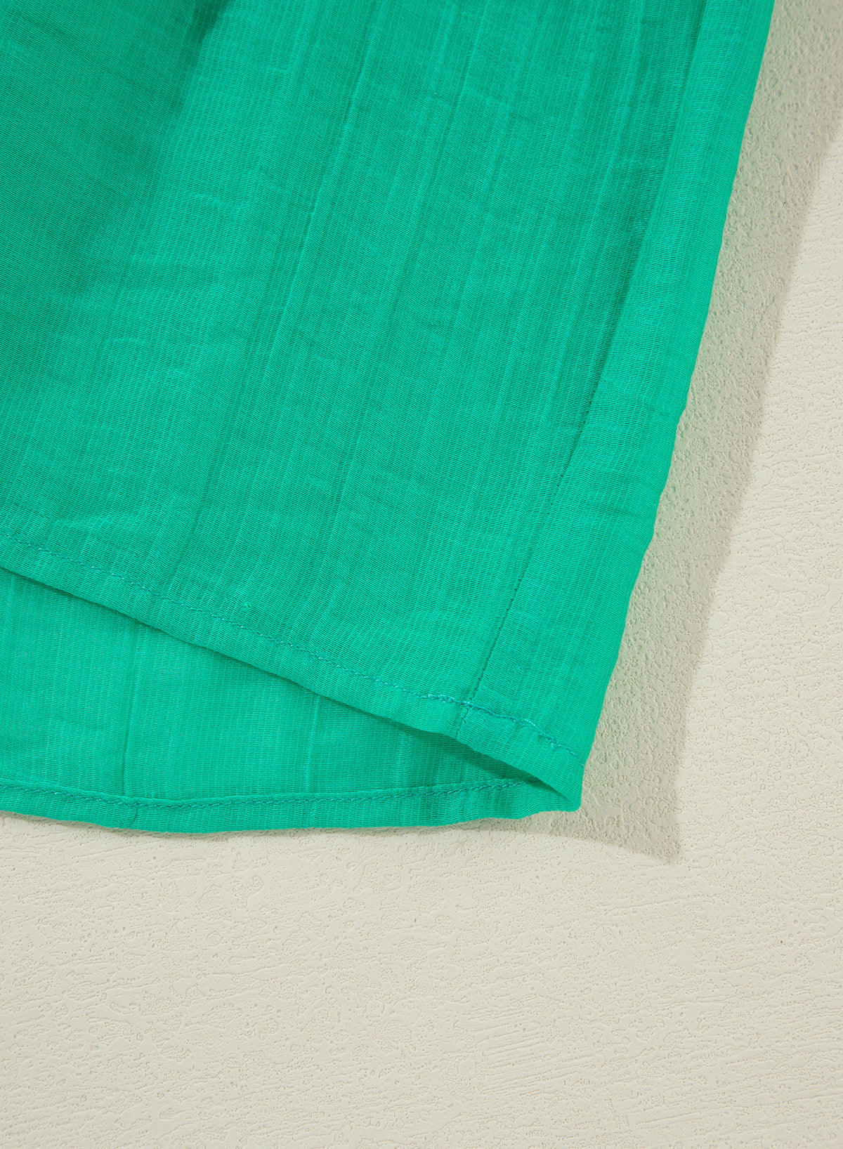 Sea Green Frilly V Neck Puff Sleeve Drawstring Shift Mini Dress