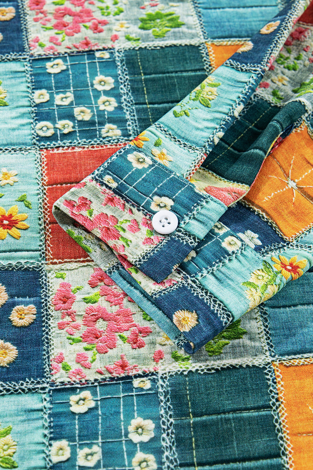- Chic floral blouse with V neck and shirt collar for a stylish look.