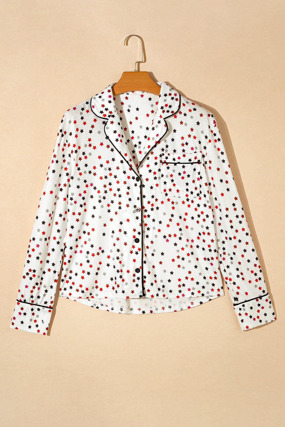 White Contrast Pipping Star Long Sleeve and Pants Pajamas Set