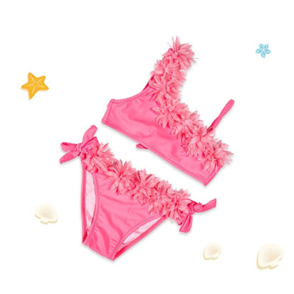 2 in 1 Baby Girls Laciness Lace-up Split Swimsuit Set (Color:Pink Size:90)