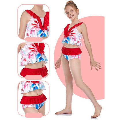 2 in 1 Small Flounce Print Swimwear + Swimming Trunks Baby Girls Split Swimsuit Set (Color:Red Size:104)
