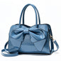 8111 Bow Bright Leather Ladies Handbag(Blue)
