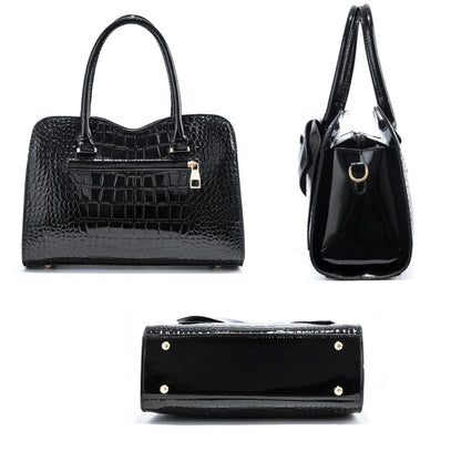 8111 Bow Bright Leather Ladies Handbag(Light Green)
