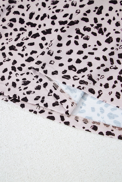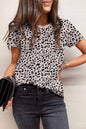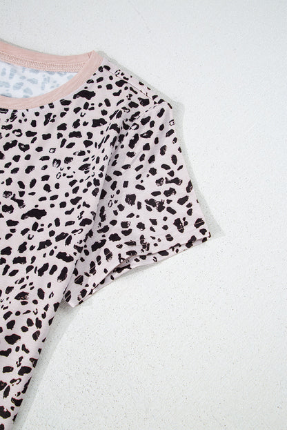 Apricot Cheetah Print O-neck Short Sleeve T Shirt