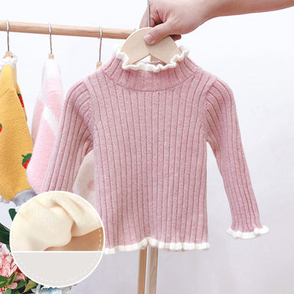 Autumn and Winter Girls Sweater Baby Warm Pullover Bottoming Shirt, Size: 100cm(Add Velvet Pink)