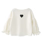 Autumn and Winter Warm Cute Puff Sleeve Top Heart-shaped Embroidered Sweatshirt Girls Tops, Height:120cm(White)