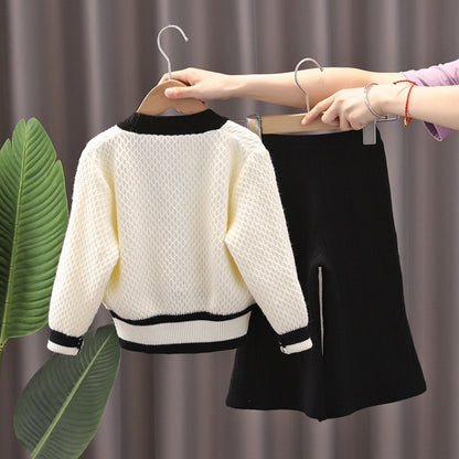 Baby Girls Winter Clothes Set Knit Sweater and Pants Autumn Girl Clothing, Size: 90(Black and White)