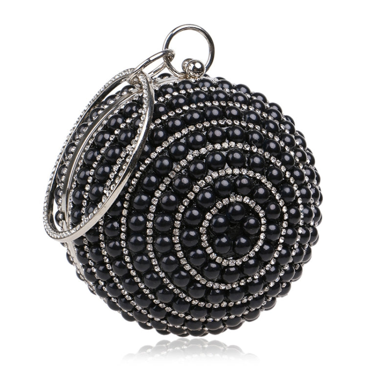 Ball Shape Women Fashion Banquet Party Pearl Handbag(Black)