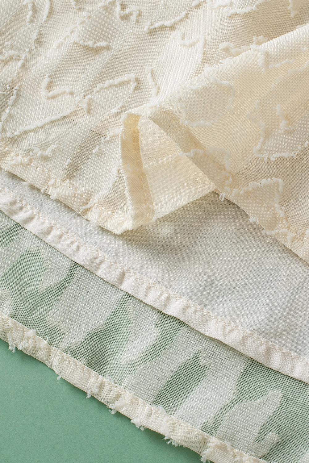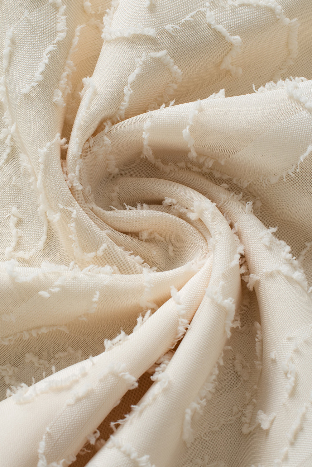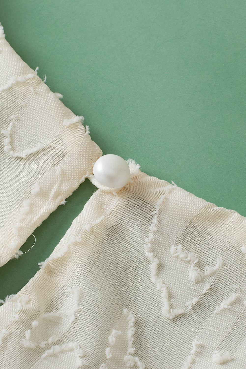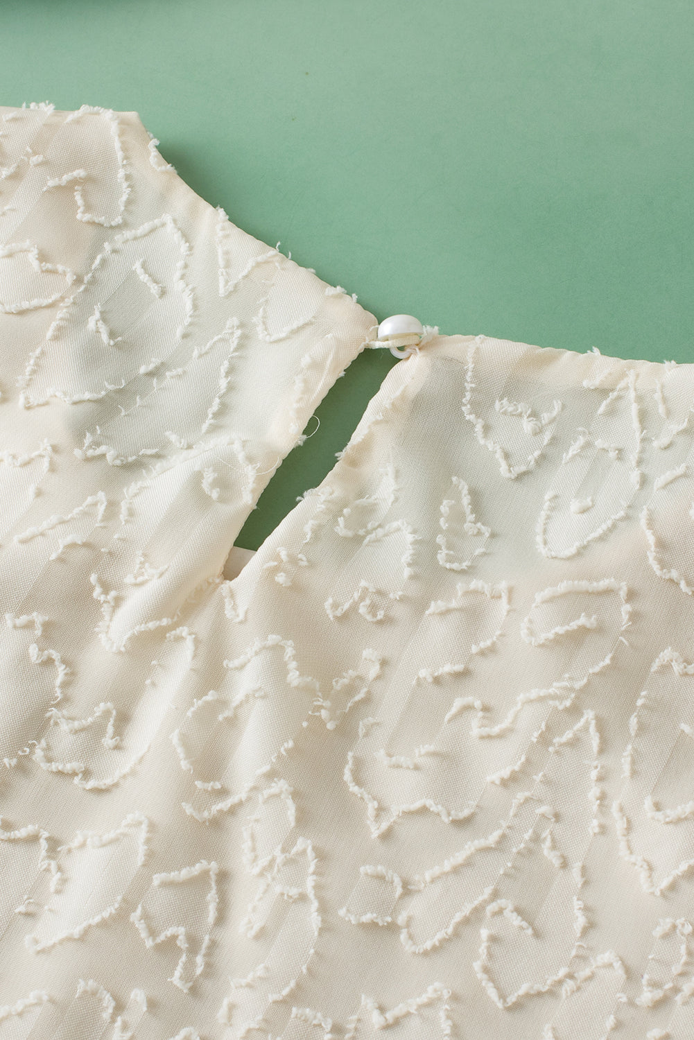 Beige Elegant Jacquard Butterfly Sleeve Blouse
