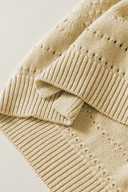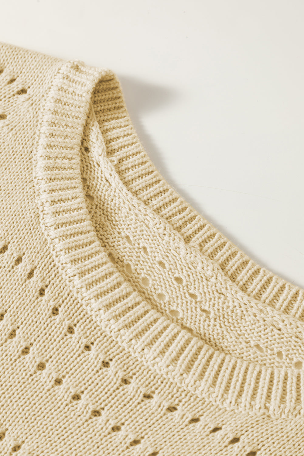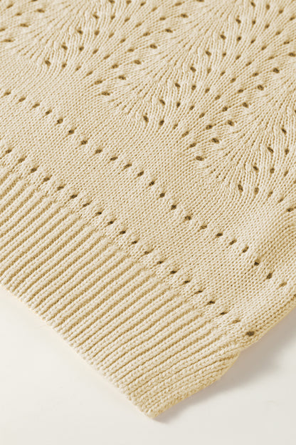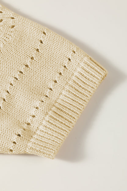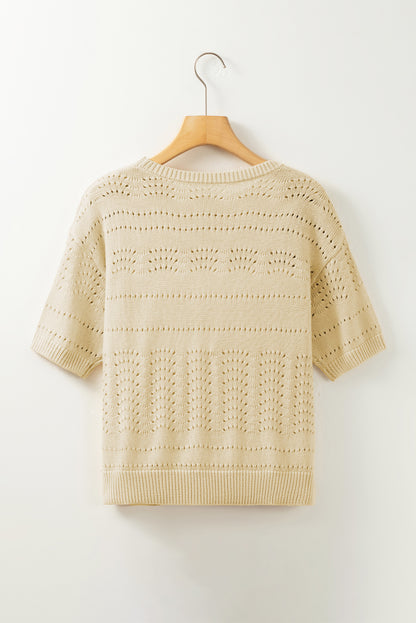 Beige Knitted Hollow out Short Sleeve Crop Sweater