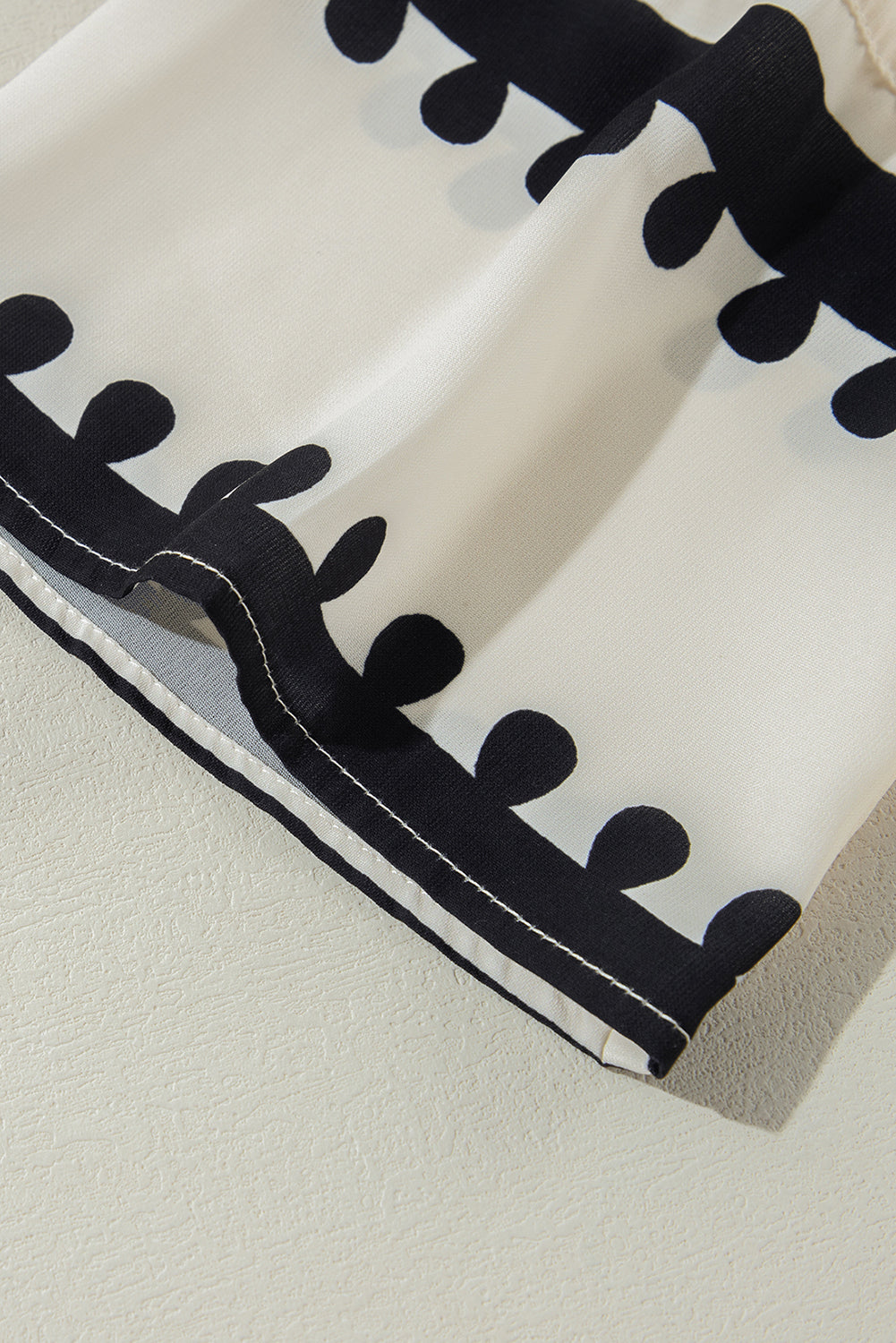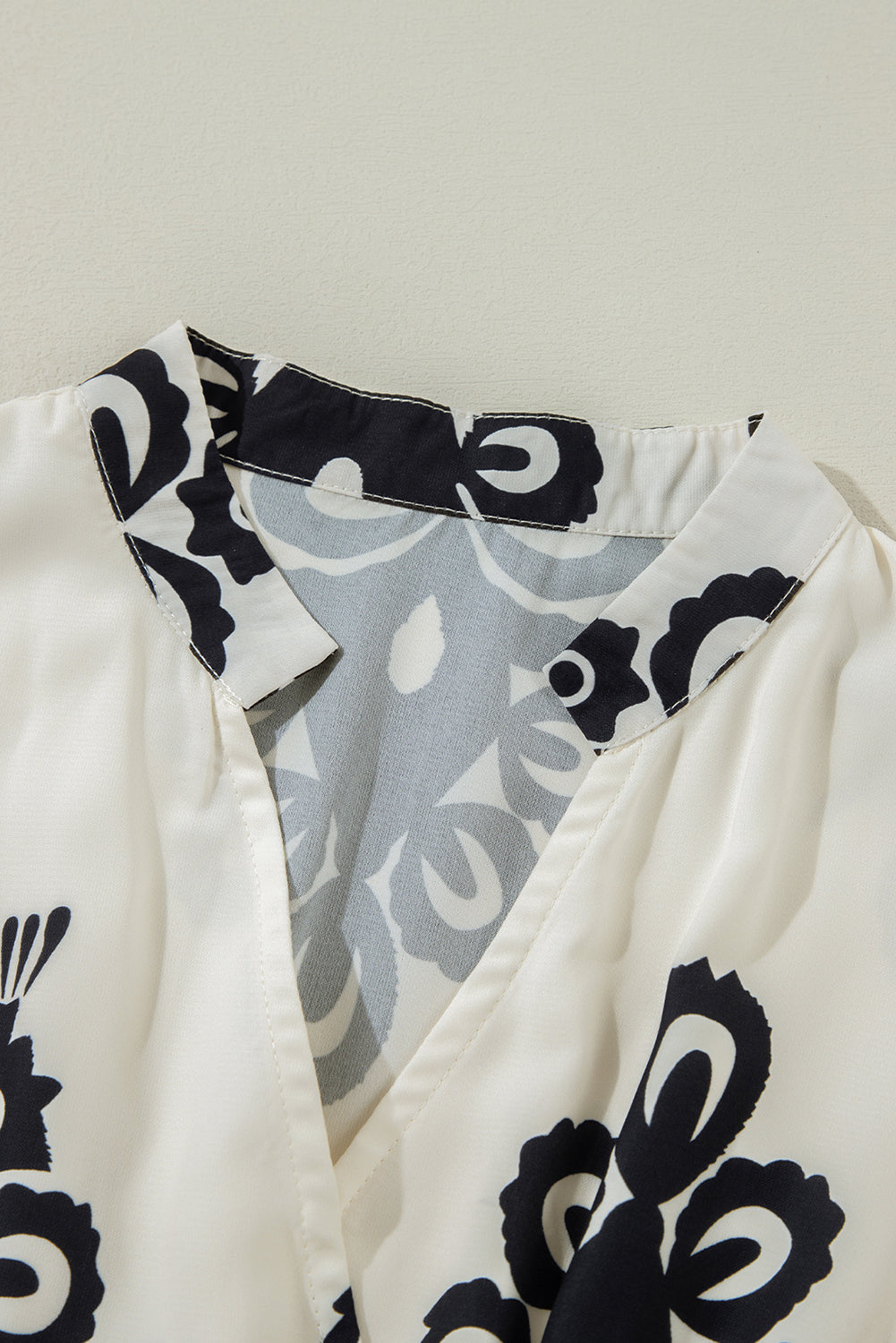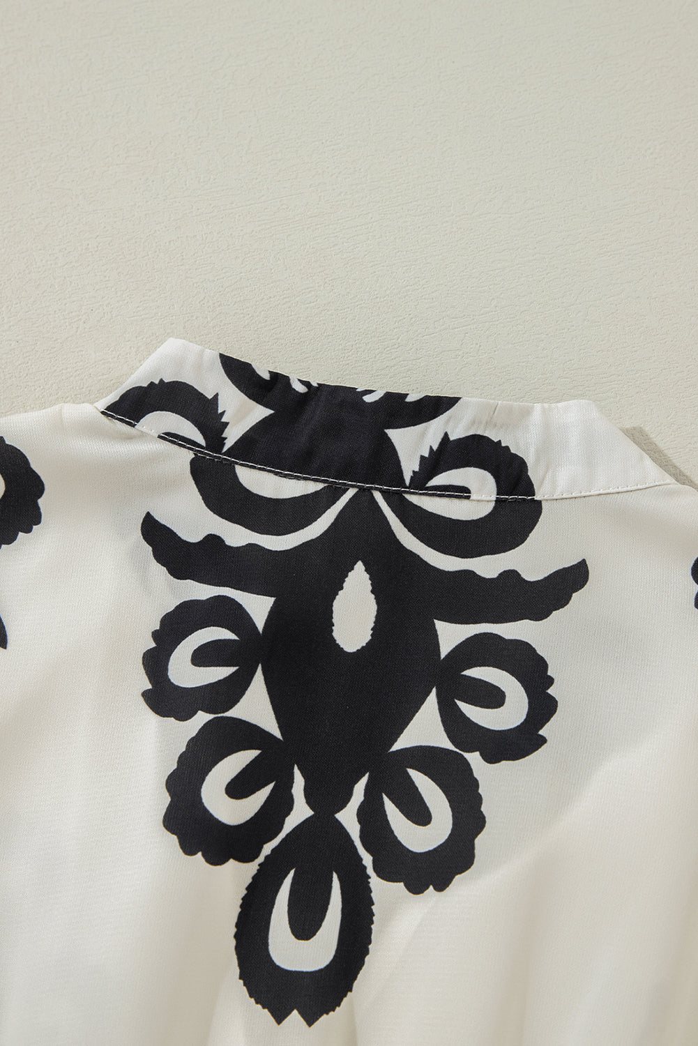 Beige Western Geometric Print 3/4 Sleeve Loose Midi Dress