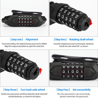 Bicycle Anti-Theft Code Lock Five-Digit Bicycle Lock Portable Bold And Long Steel Cable With Bracket Car Lock(Black)