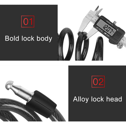 Bicycle Portable Anti-theft Lock Steel Cable Lock with Lock Frame, Style:B Style 120cm Black