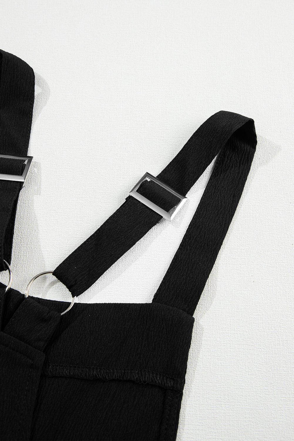 Crafted from high-quality fabric, this jumpsuit offers both comfort and sophistication. The black hue lends a timeless appeal, while the adjustable buckle straps add a touch of modern flair and allow for a customized fit.