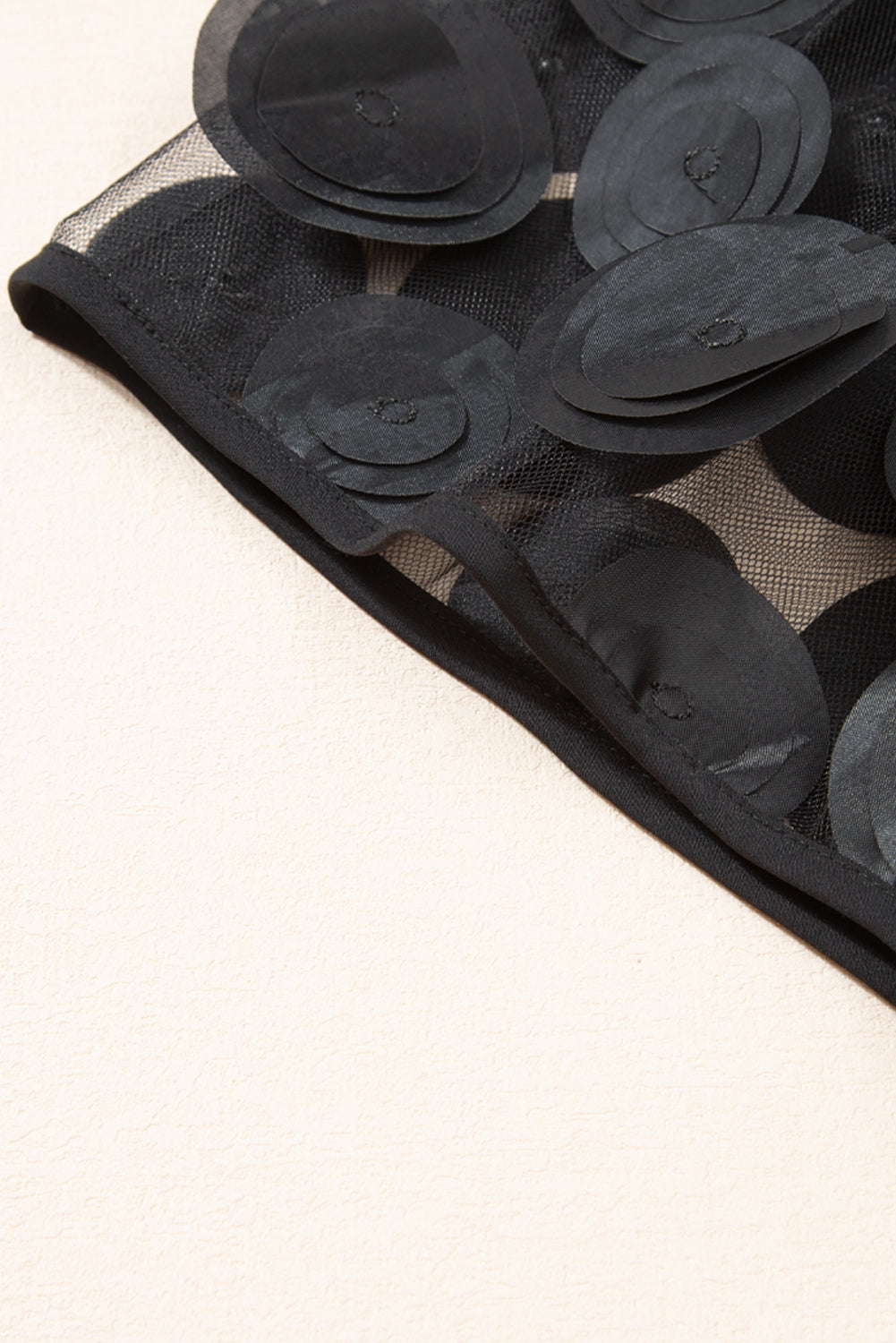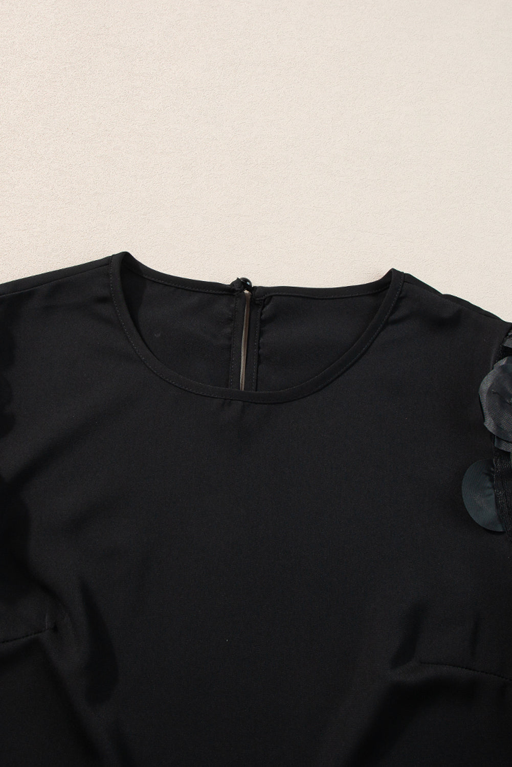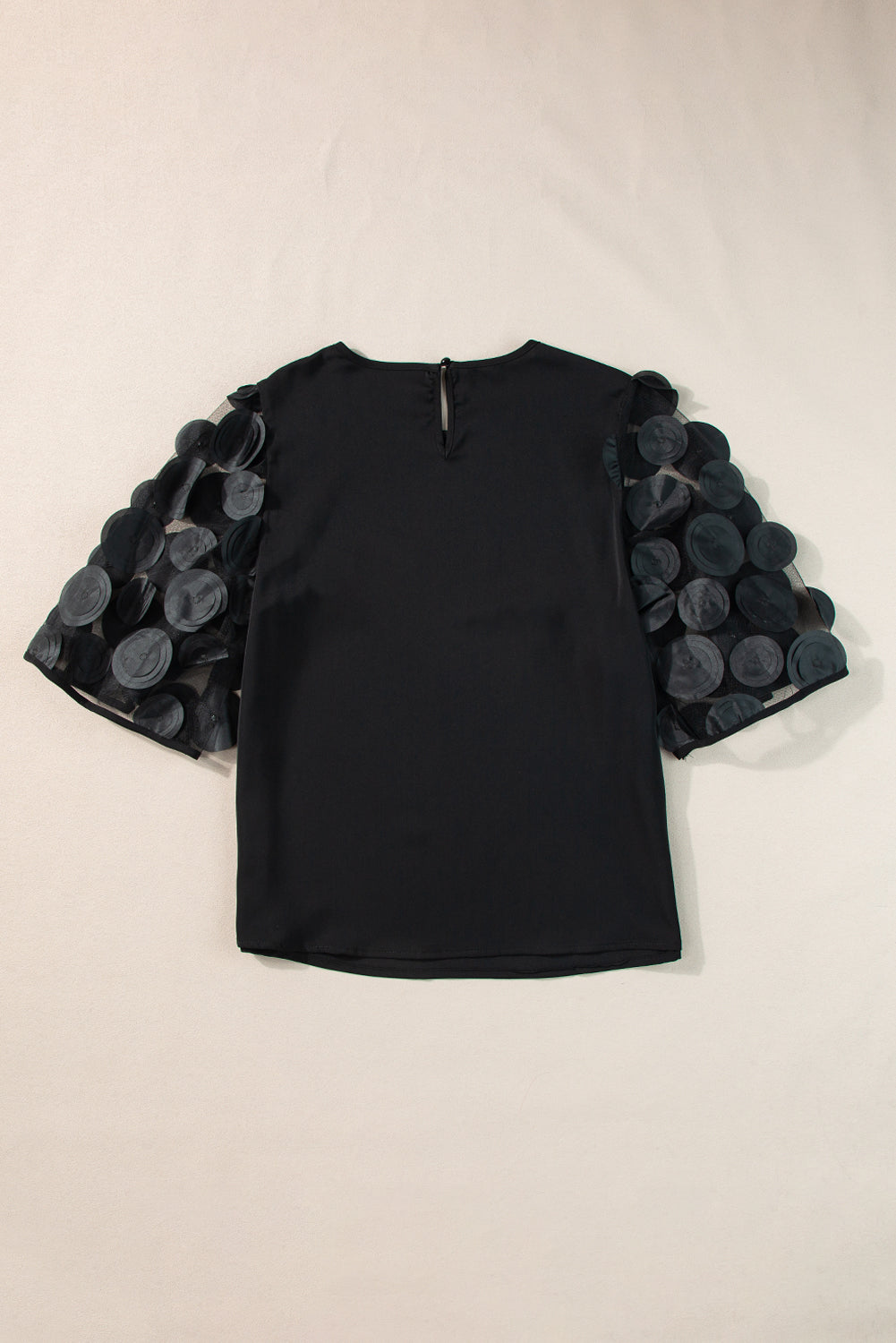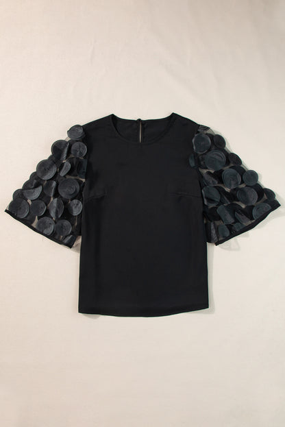 Black Contrast Applique Mesh Half Sleeve Blouse