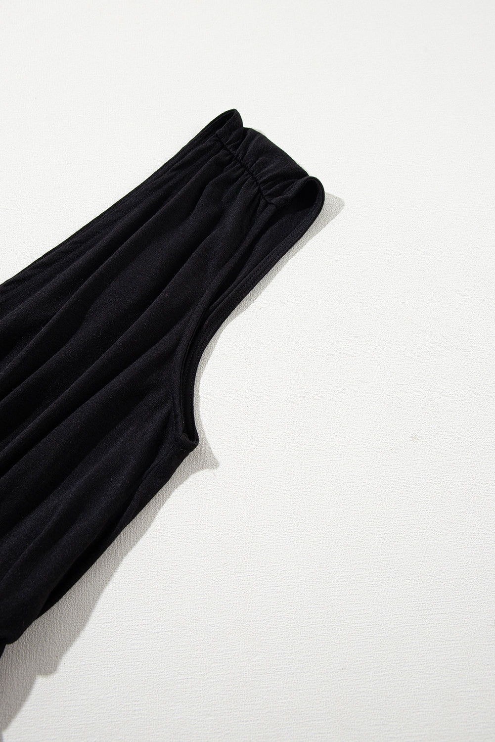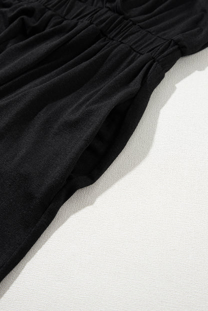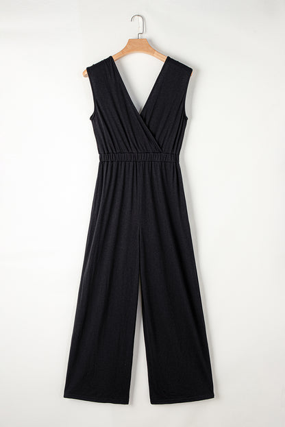 Black Deep V Pleated Crisscross Wide Leg Backless Jumpsuit