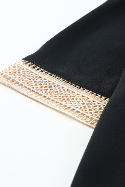 - This short-sleeve v-neck top features delicate open-lace trim details