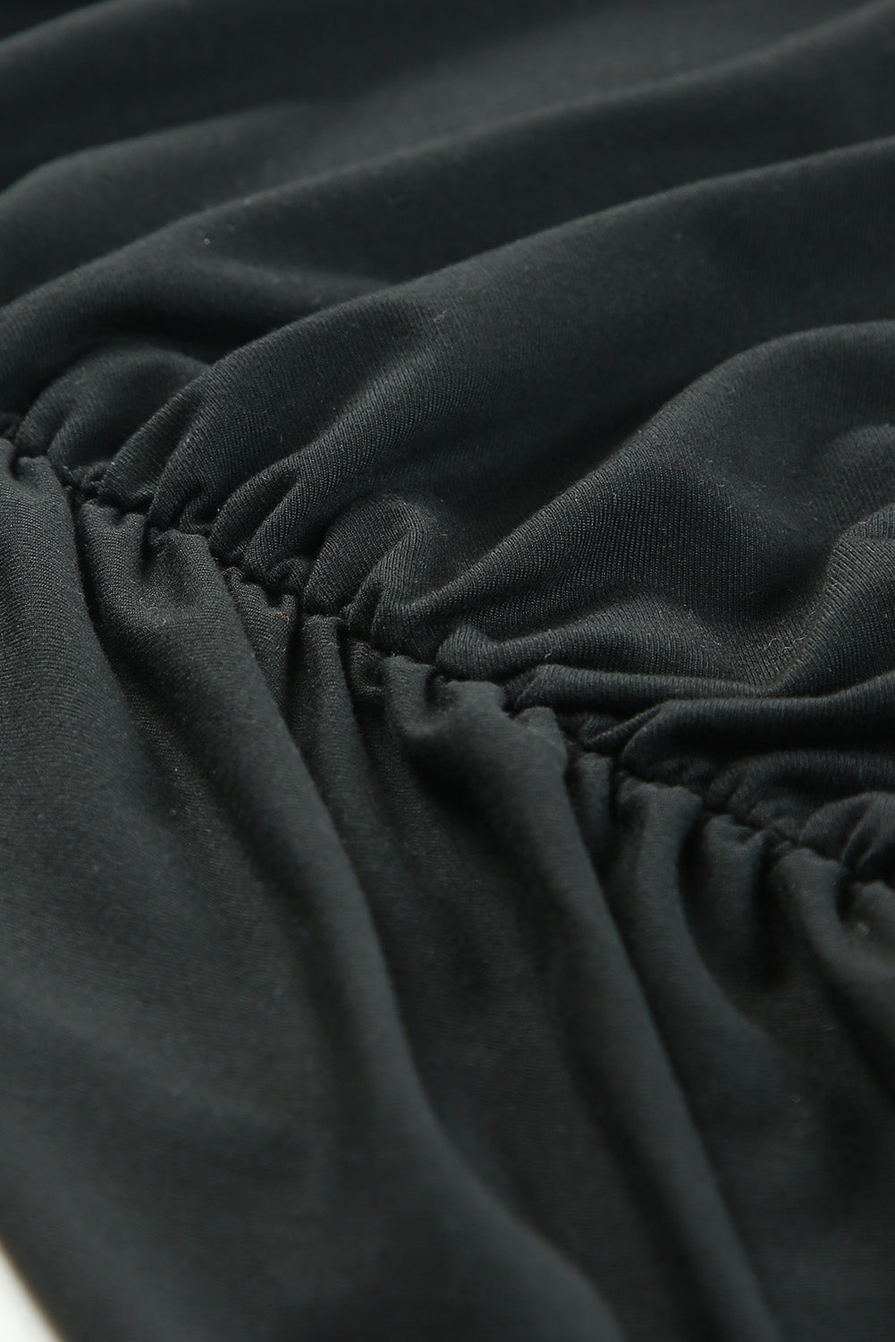 Black One-shoulder Short Sleeve Ruched Bodycon Dress
