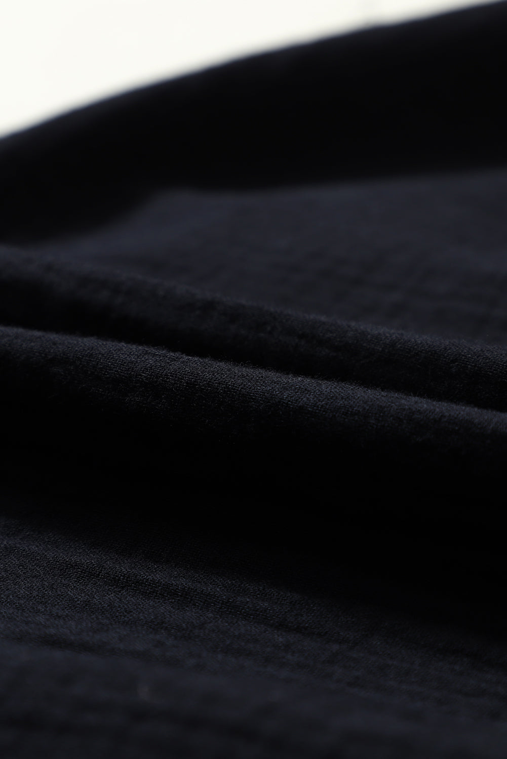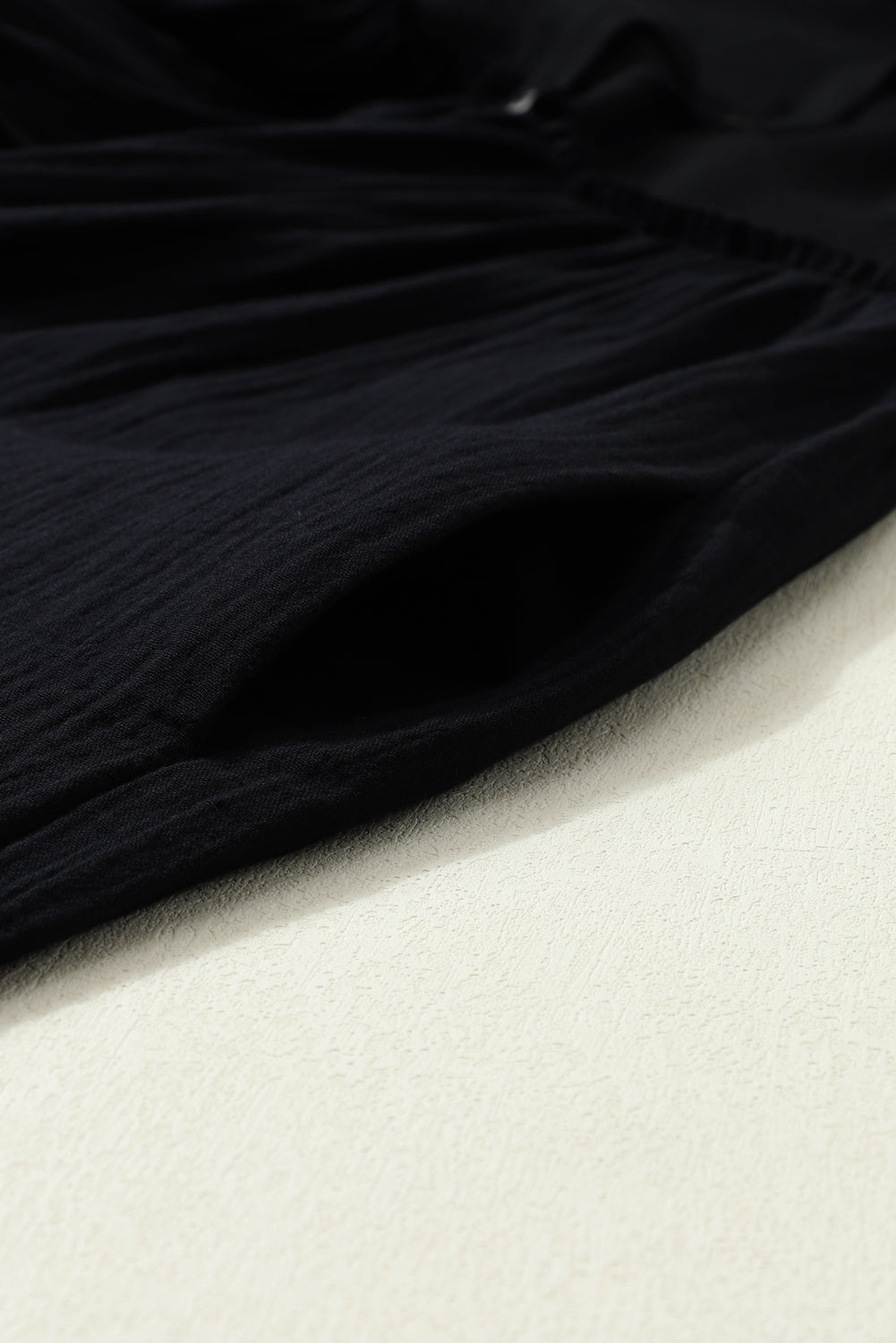 Black Patchwork Crinkle Puff Sleeve Shirt Dress