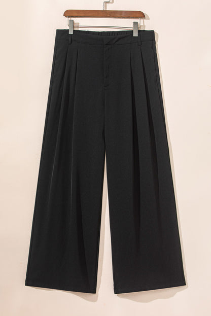 Introducing our Black Pleated Elegant Wide Leg Pants, where sophistication meets style in a timeless and versatile design! Crafted from high-quality fabric, these pants feature a classic black hue that exudes elegance and refinement. The pleated detailing adds a touch of sophistication and visual interest, elevating the overall look with understated charm. The wide leg silhouette offers a relaxed and flowy fit, perfect for both formal and casual occasions. Whether you're attending a business meeting, going out for dinner, or enjoying a night on the town, these pants will keep you looking effortlessly chic. Pair them with a tailored blouse and heels for a polished and professional ensemble, or dress them down with a simple tee and sneakers for a more relaxed vibe. Embrace timeless elegance with our Black Pleated Elegant Wide Leg Pants and elevate your wardrobe with ease.