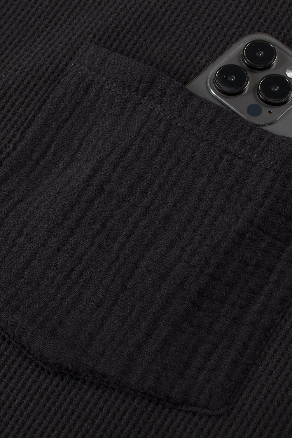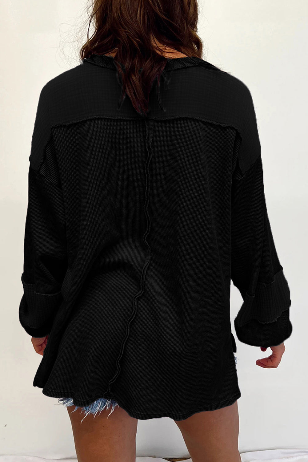 Black Plus Size Exposed Seam Crinkle Patchwork Top