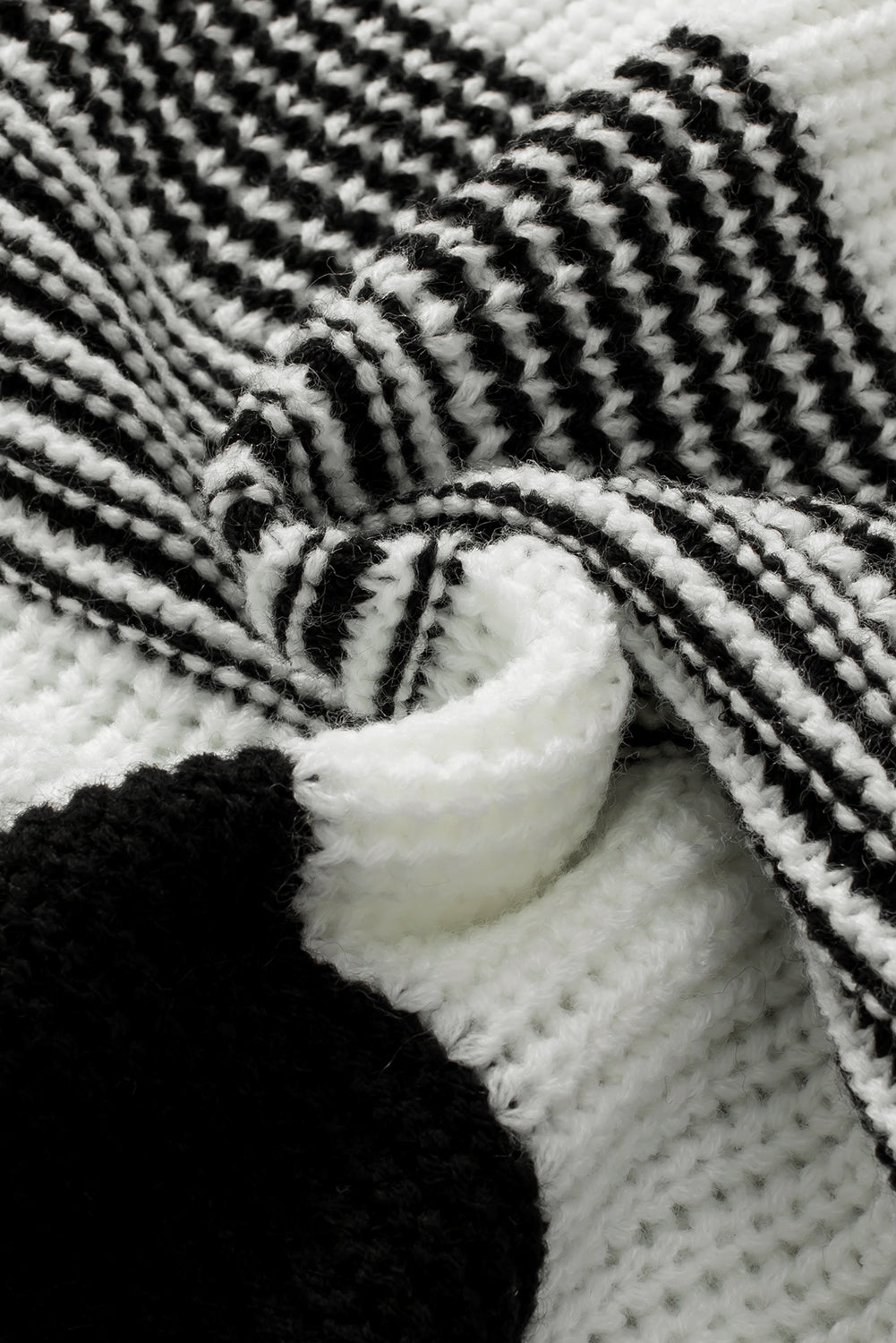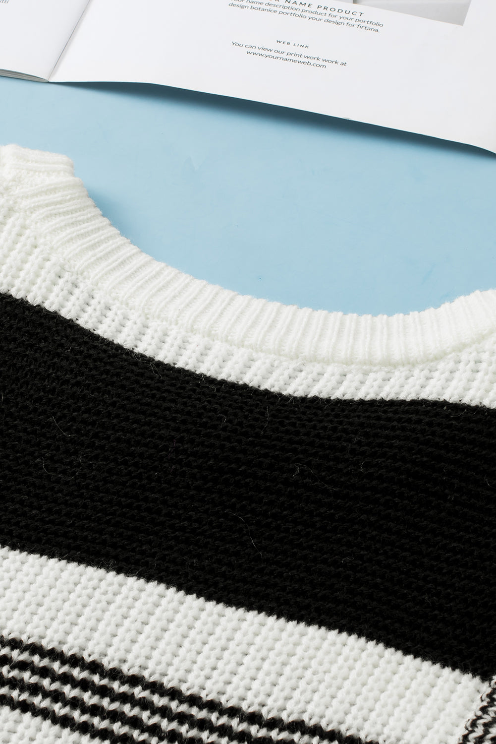 Black Plus Size Mixed Striped Print Ruffled Sweater Vest