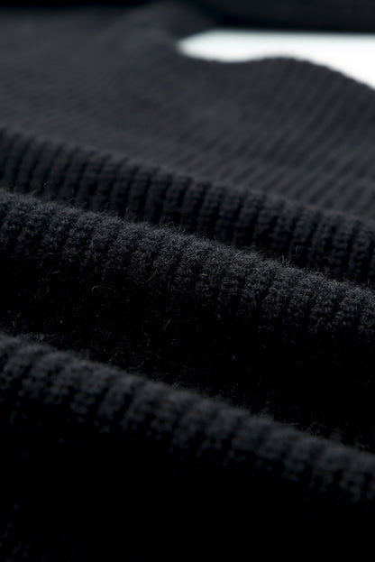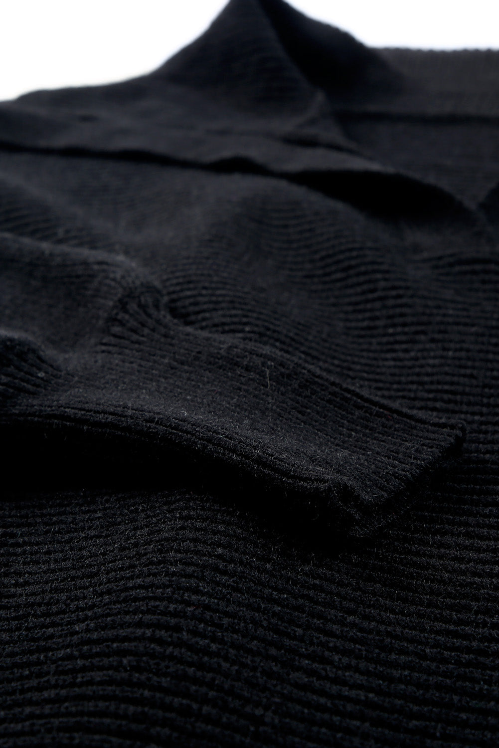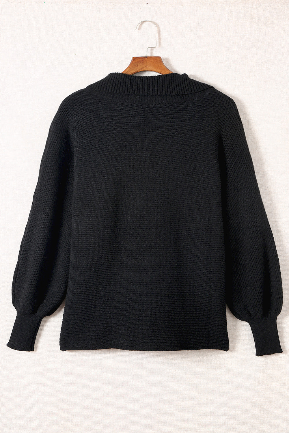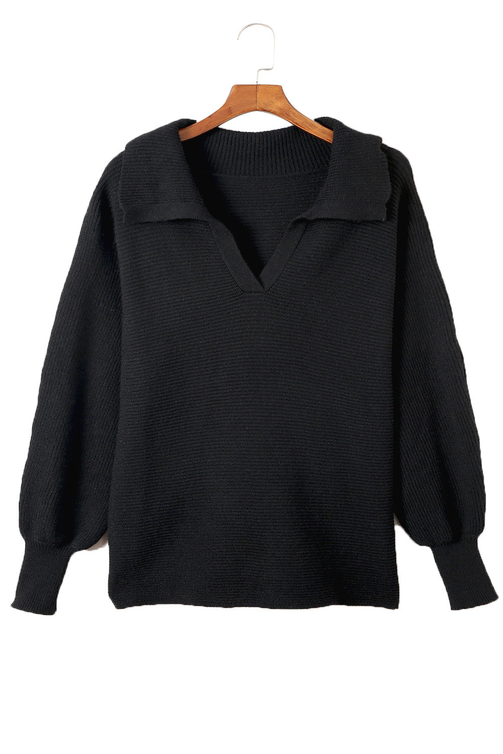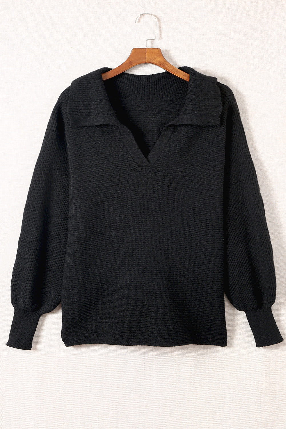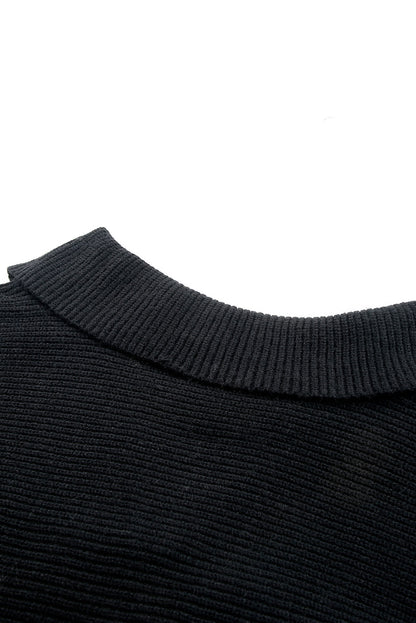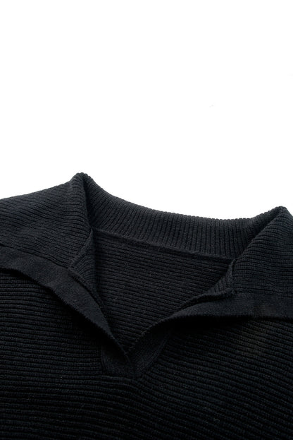 Black Ribbed Knit Lapel Neck Curvy Sweater