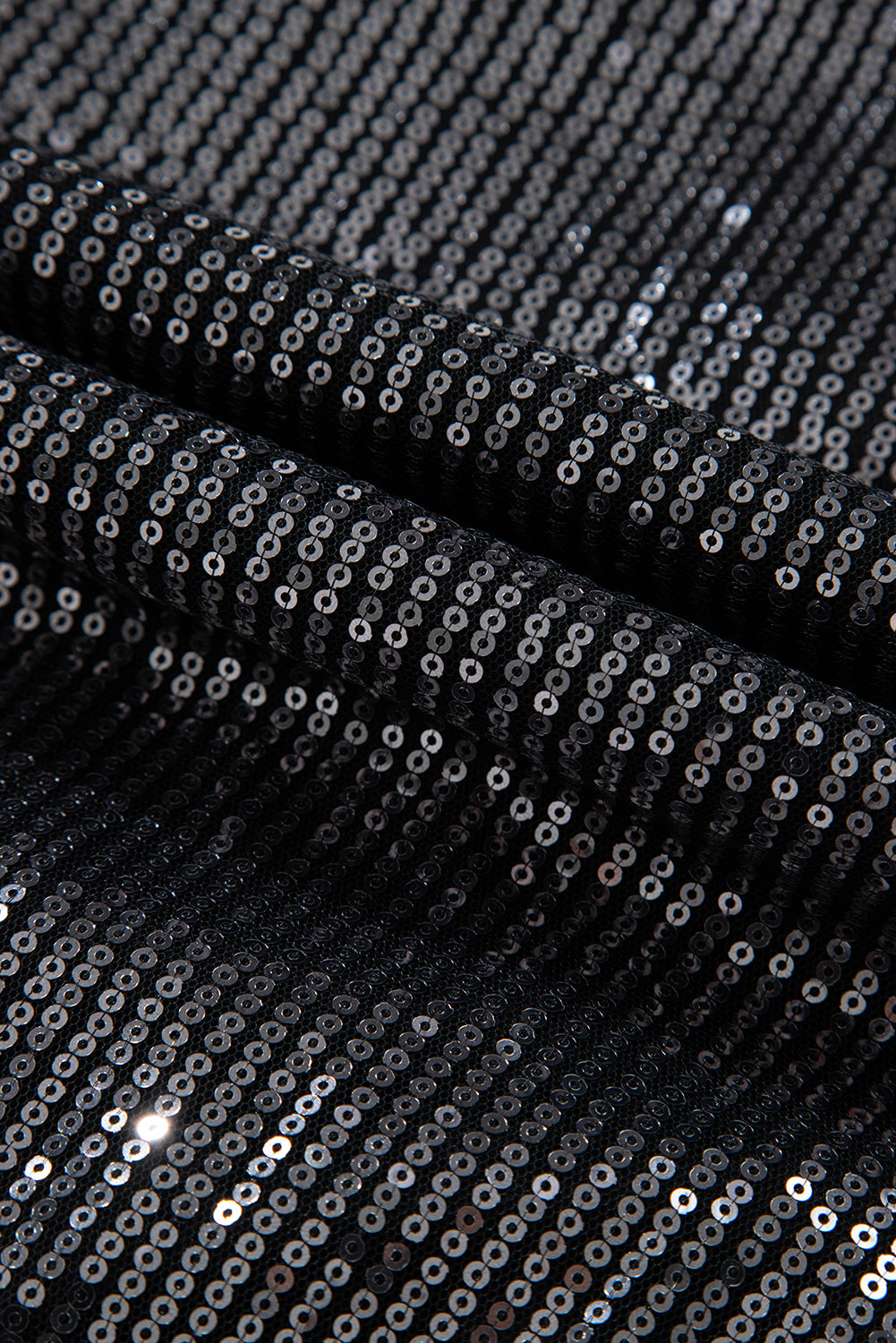 Black Sequin Mesh Long Sleeve Surplice Neck Bodysuit